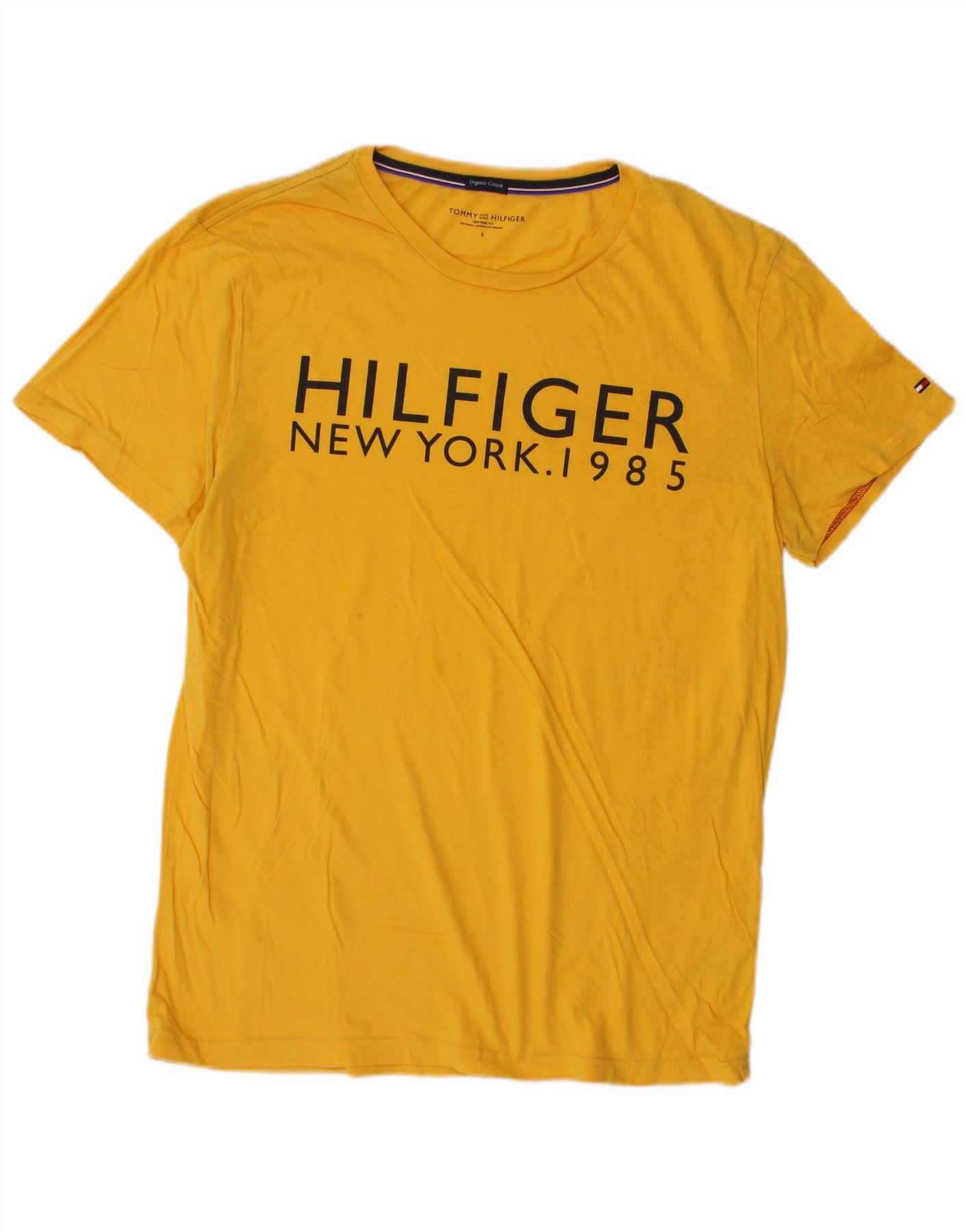 TOMMY HILFIGER Mens Graphic T-Shirt Top Large Yellow Cotton
