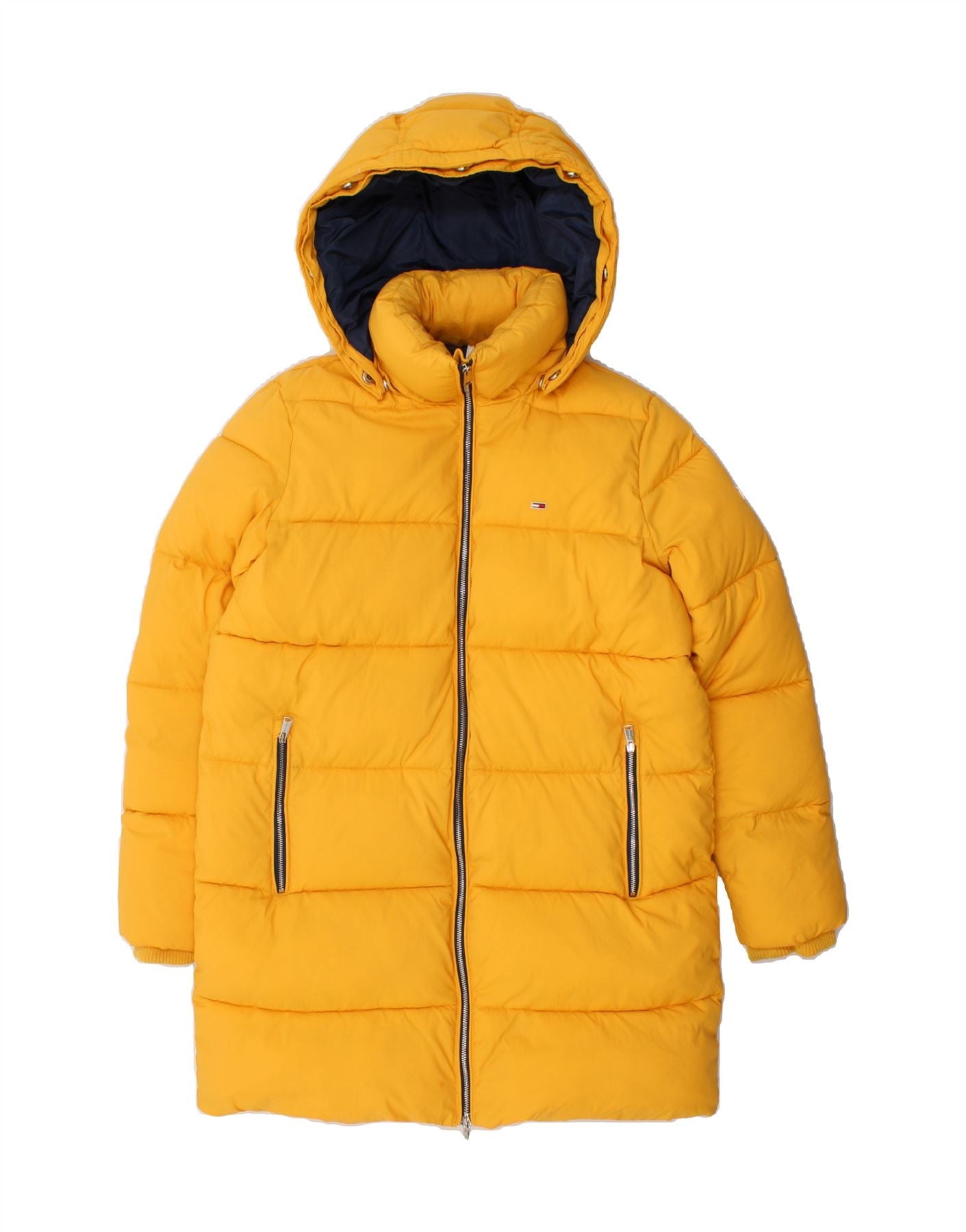 TOMMY HILFIGER Mens Hooded Padded Coat UK 36 Small Yellow Polyamide