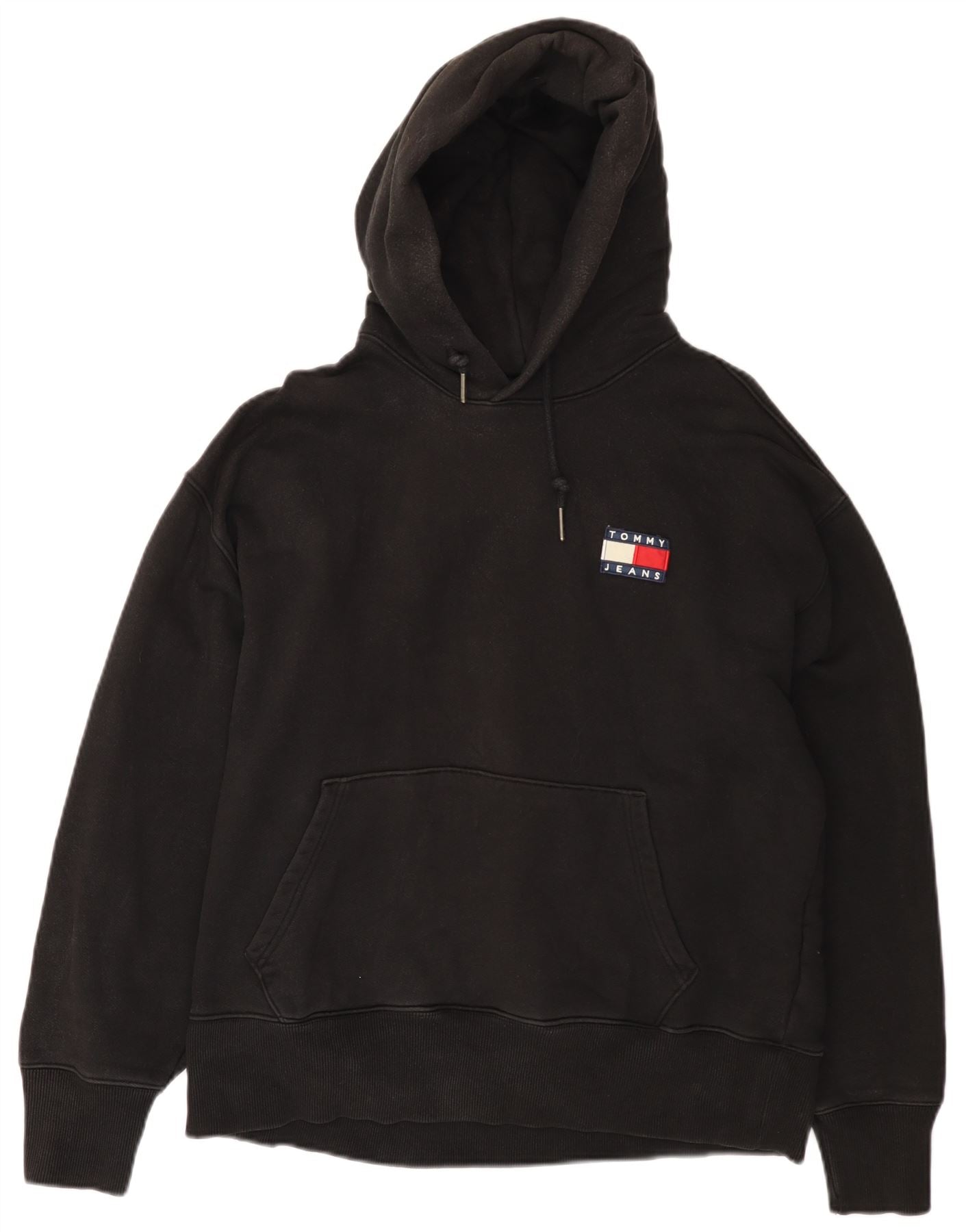 TOMMY HILFIGER Mens Hoodie Jumper XL Black Cotton