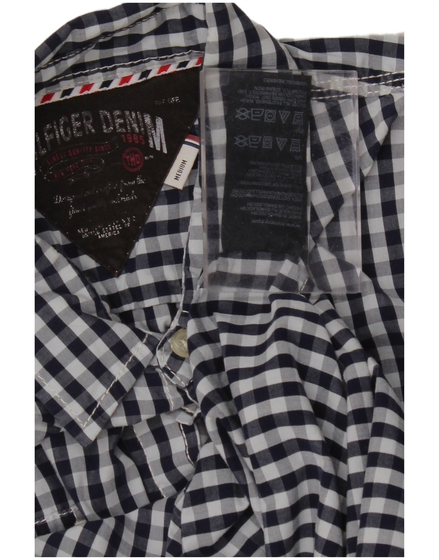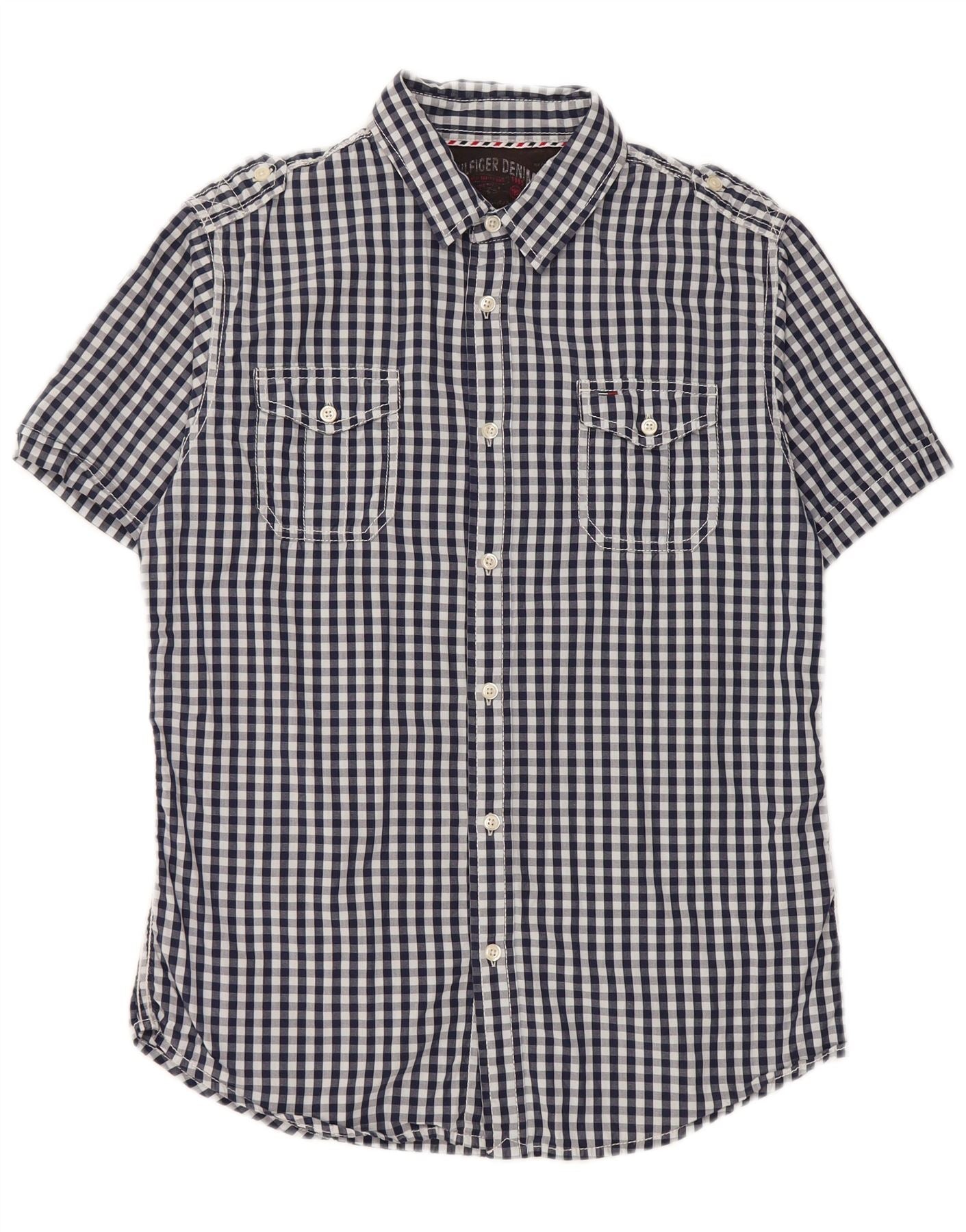 TOMMY HILFIGER Mens Military Short Sleeve Shirt Medium Navy Blue Gingham