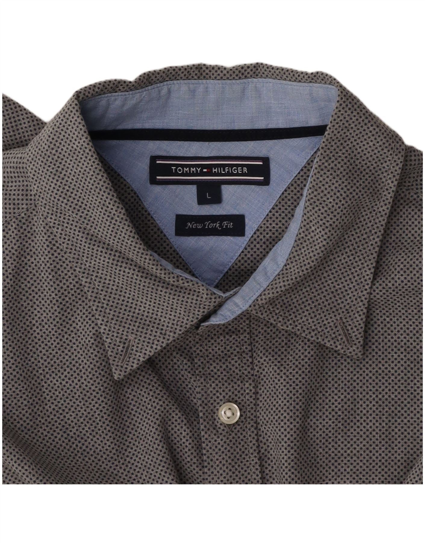 TOMMY HILFIGER Mens New York Fit Shirt Large Grey Spotted