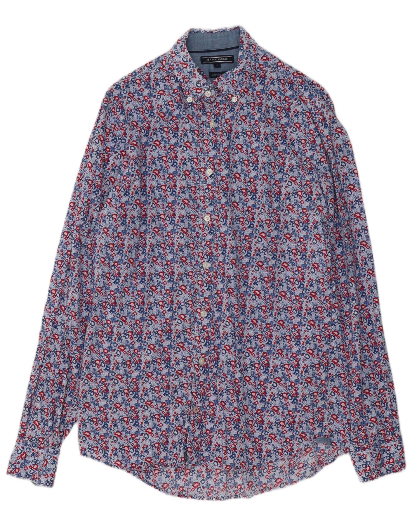 TOMMY HILFIGER Mens New York Fit Shirt Small Blue Floral Cotton