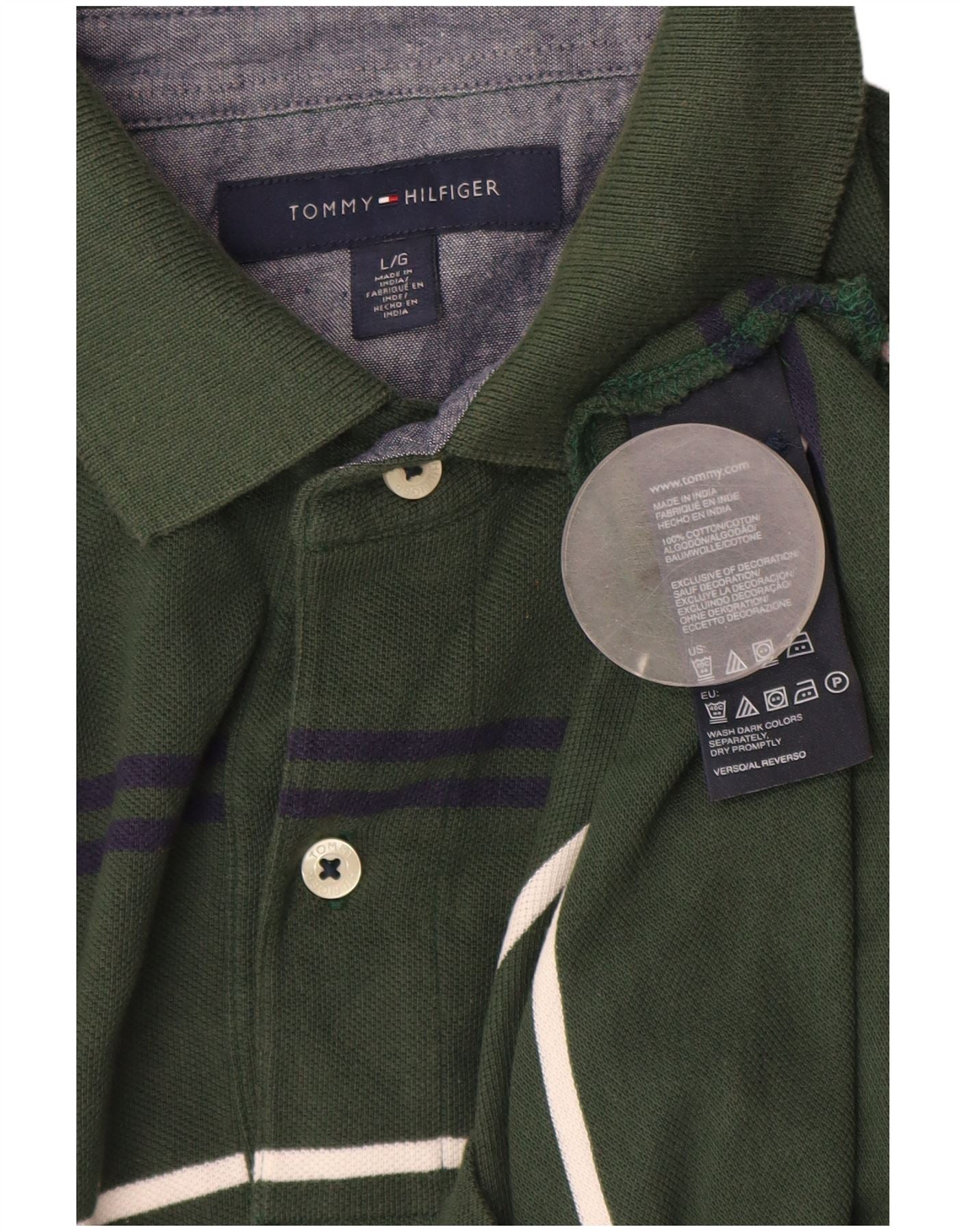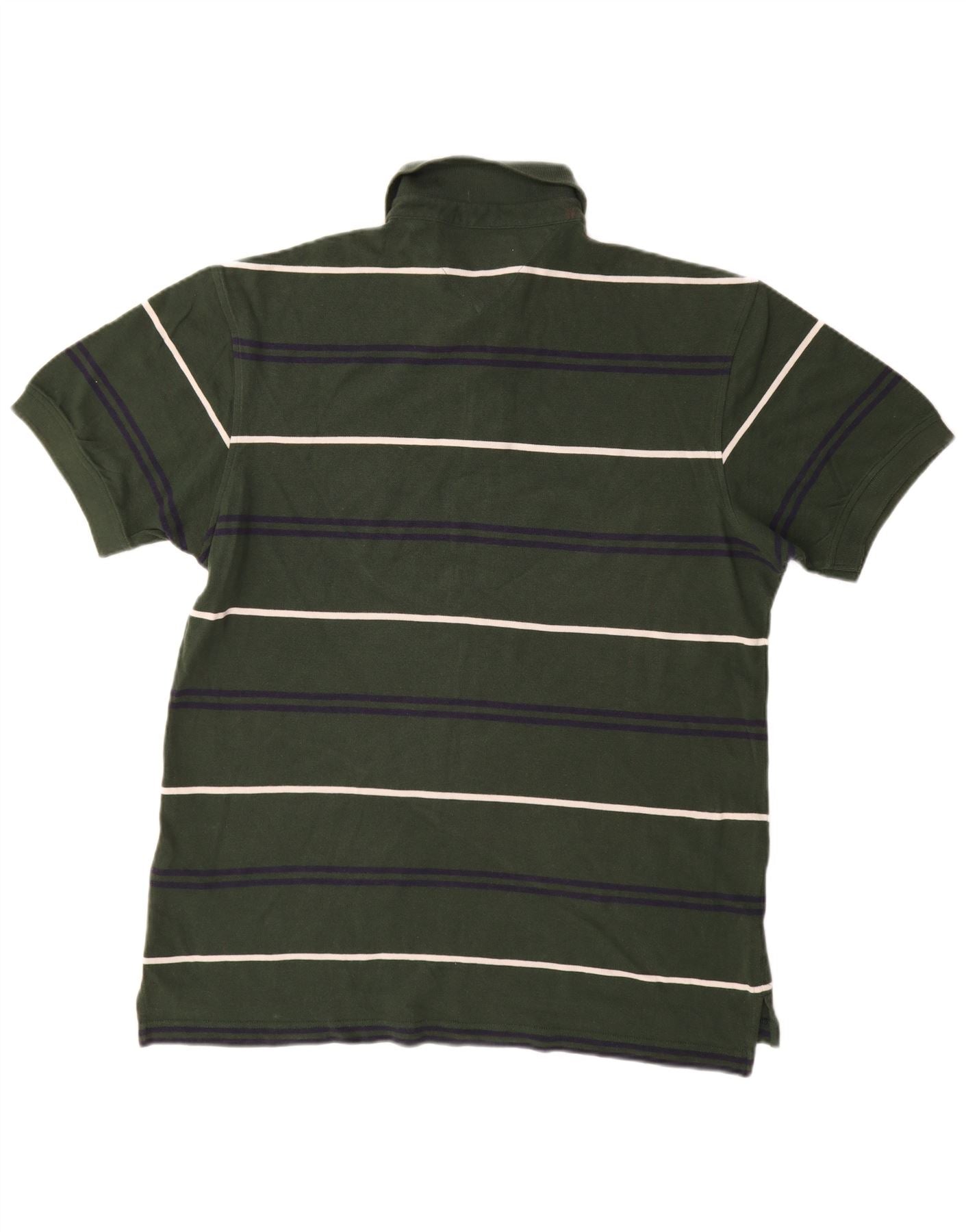 TOMMY HILFIGER Mens Polo Shirt Large Green Striped Cotton