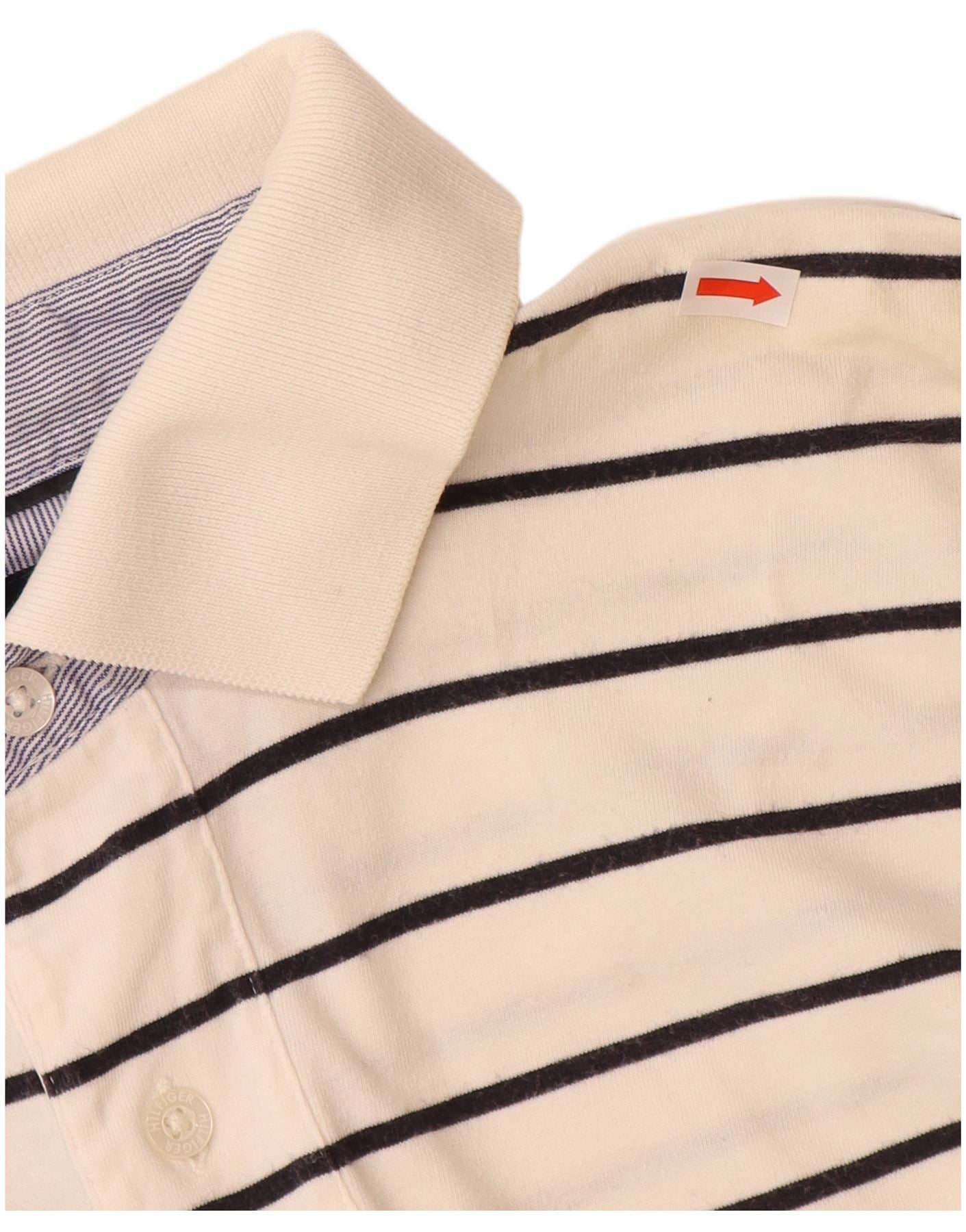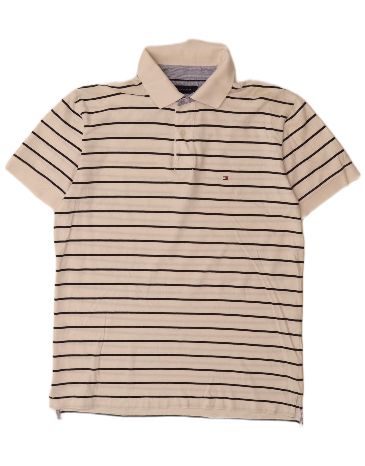 TOMMY HILFIGER Mens Polo Shirt Large Off White Striped Cotton