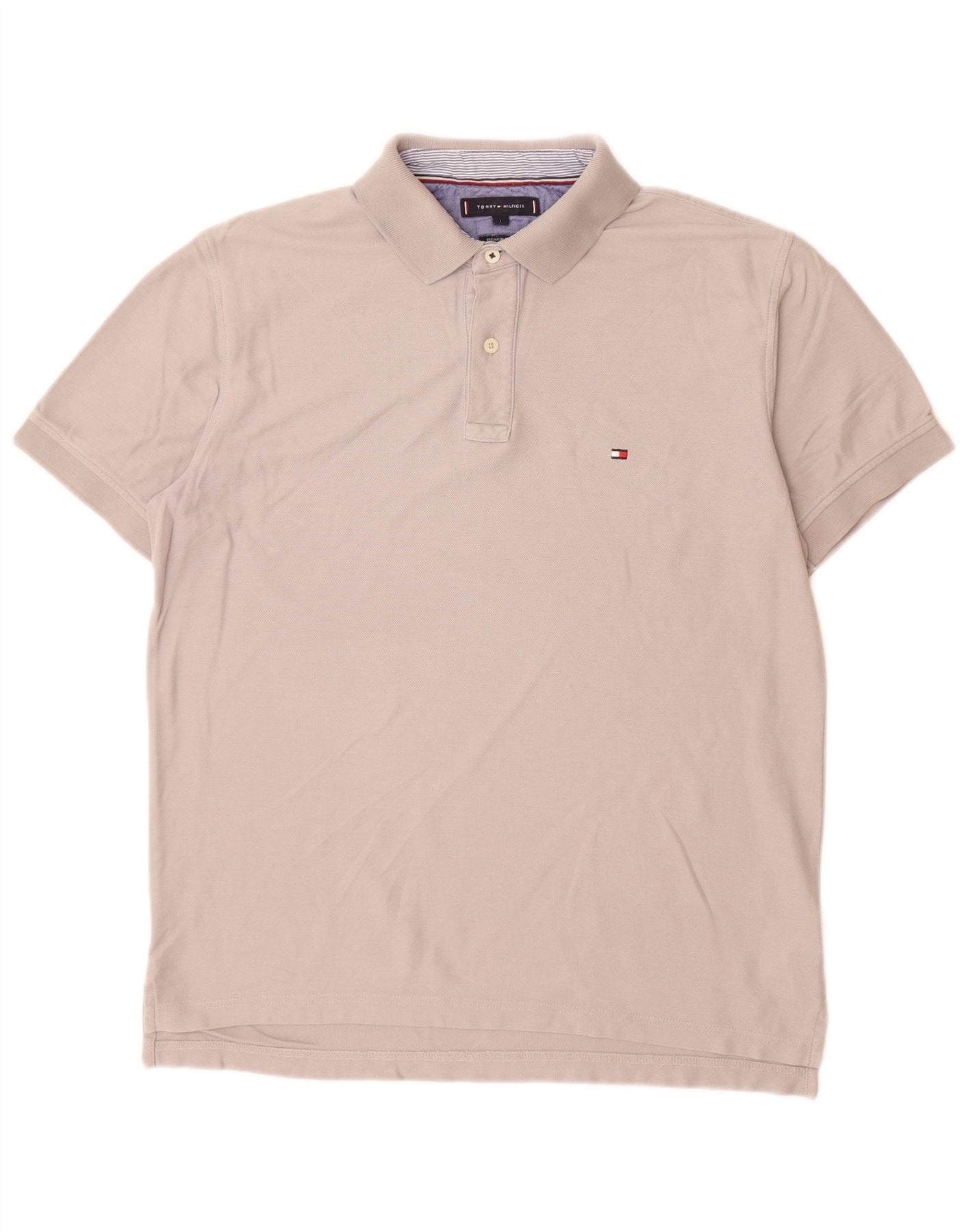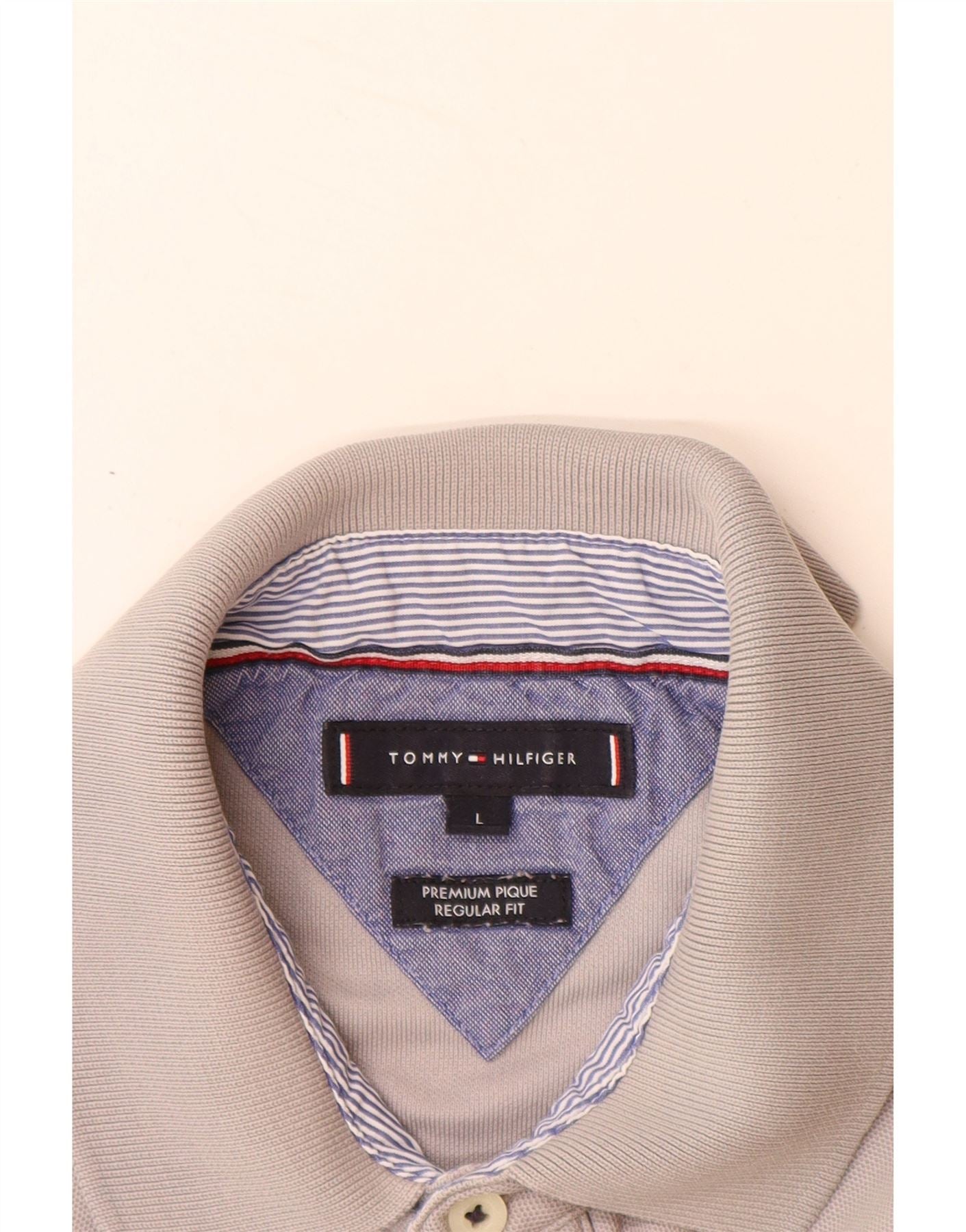 TOMMY HILFIGER Mens Regular Fit Polo Shirt Large Grey Cotton