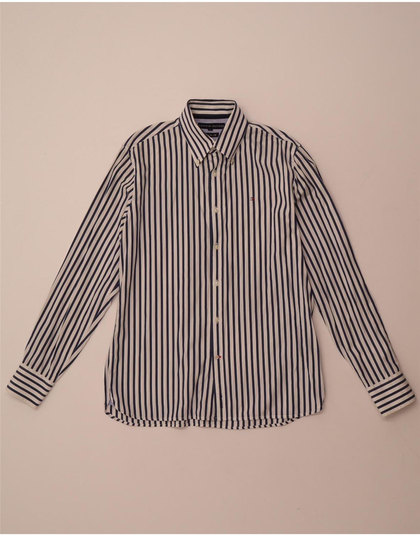 TOMMY HILFIGER Mens Shirt Medium White Striped Cotton