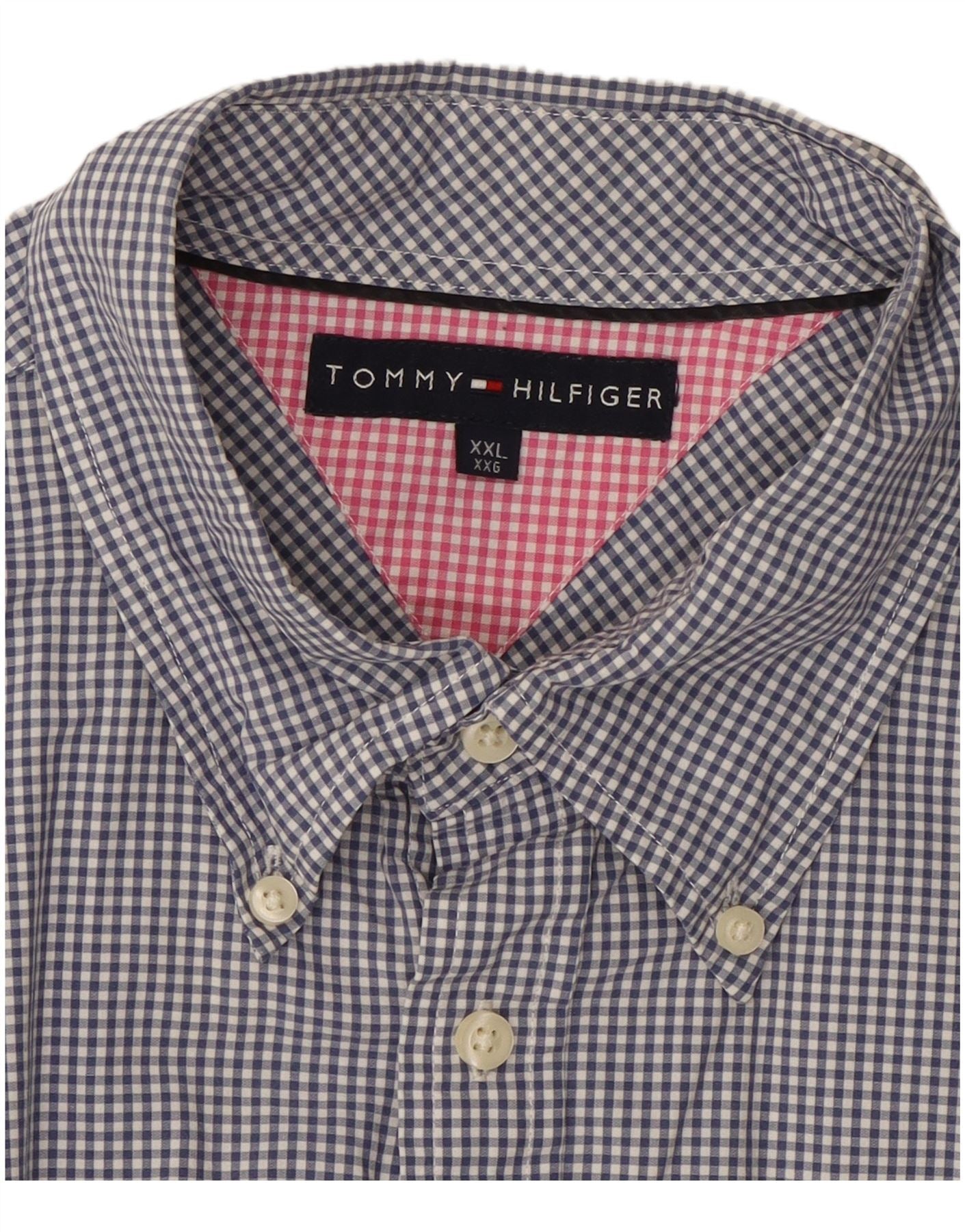 TOMMY HILFIGER Mens Short Sleeve Shirt 2XL Blue Gingham Cotton