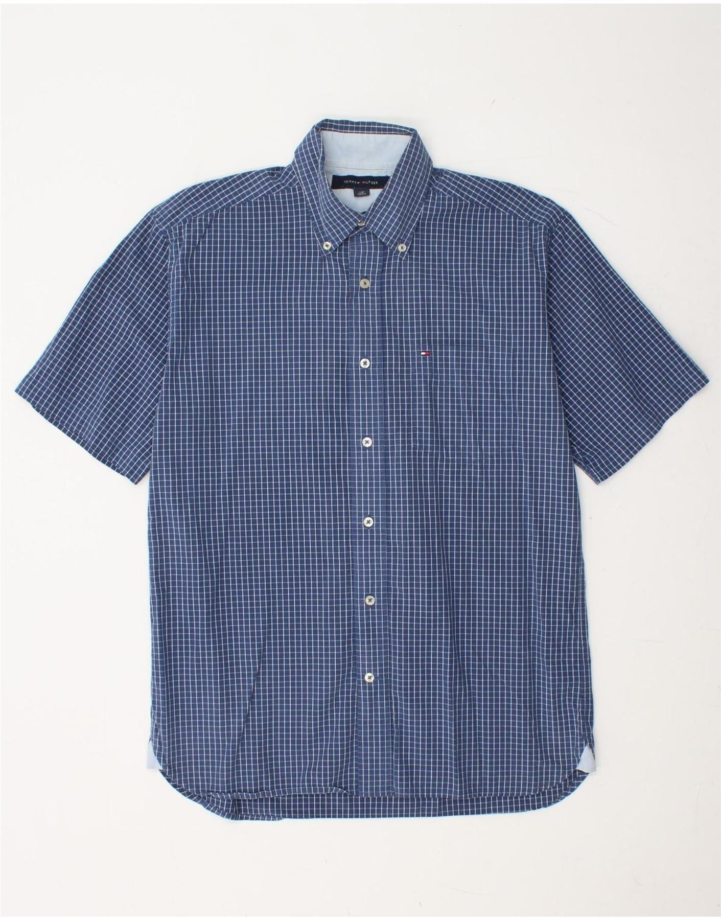 TOMMY HILFIGER Mens Short Sleeve Shirt Small Blue Check Cotton