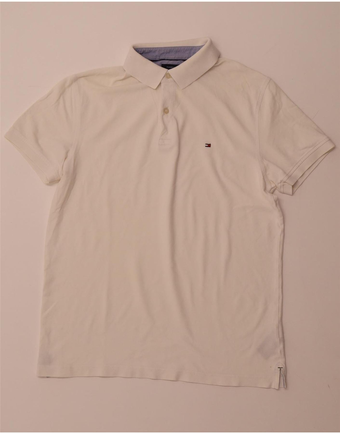 TOMMY HILFIGER Mens Slim Fit Polo Shirt Large White Cotton