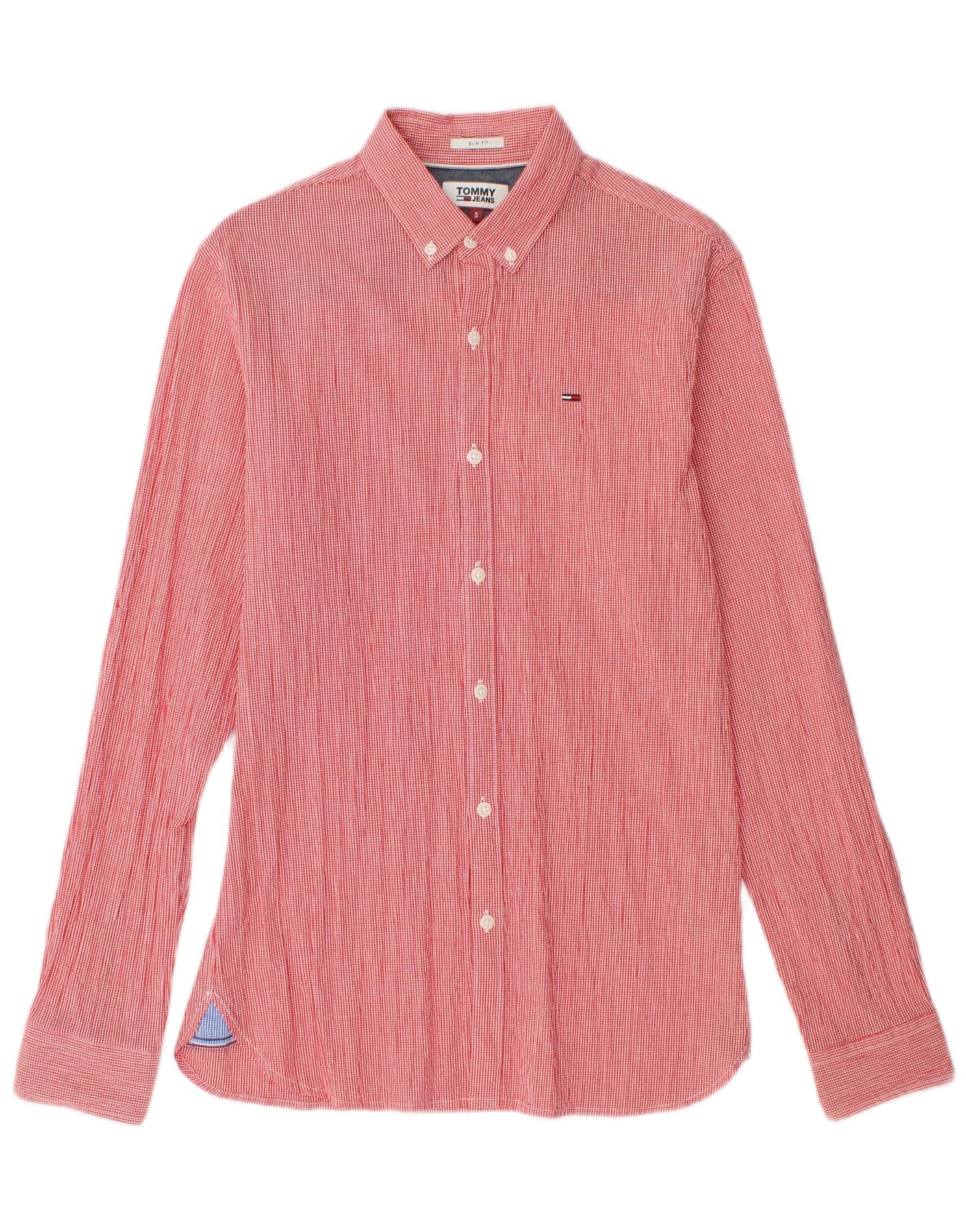 TOMMY HILFIGER Mens Slim Fit Shirt Small Red Striped Cotton