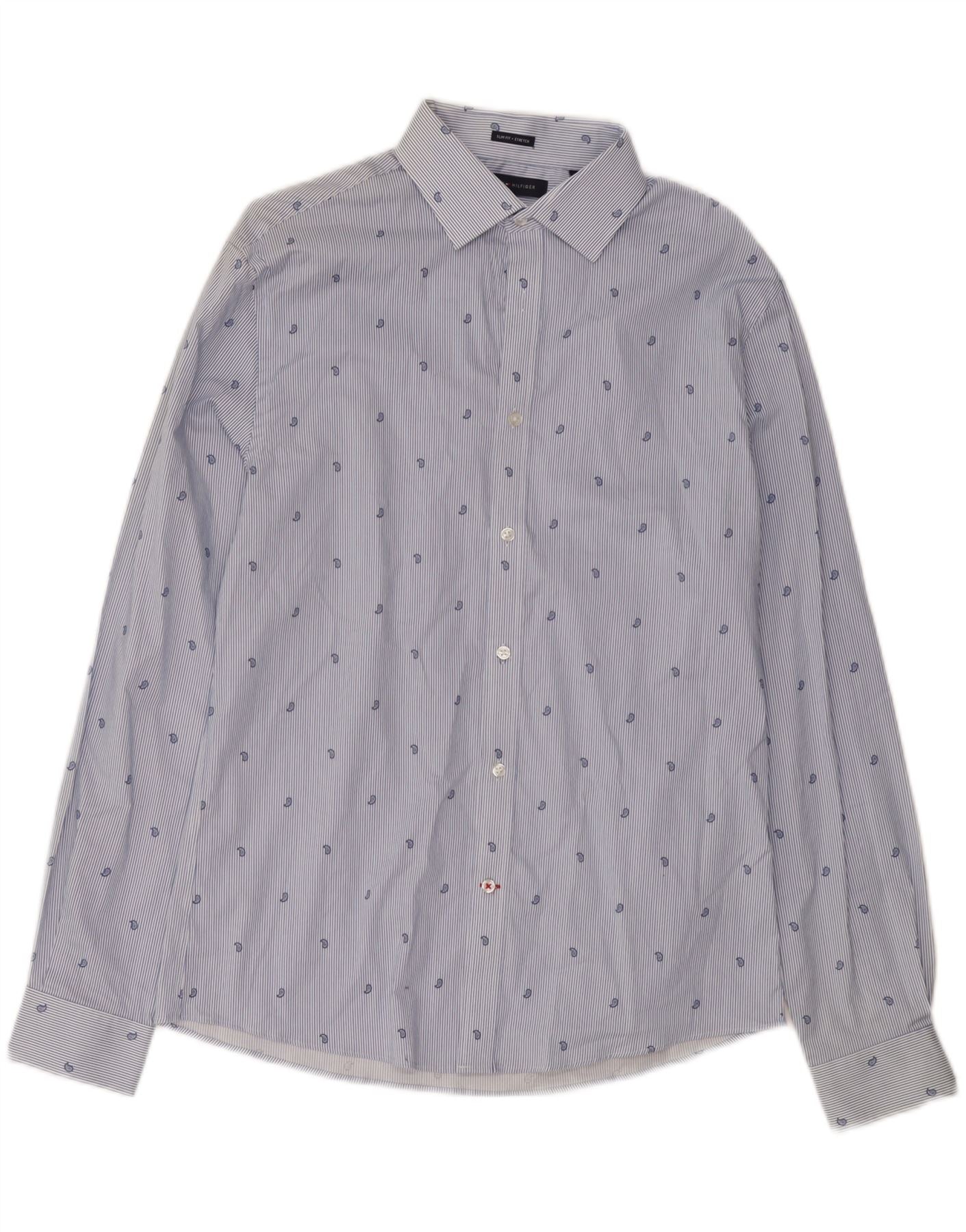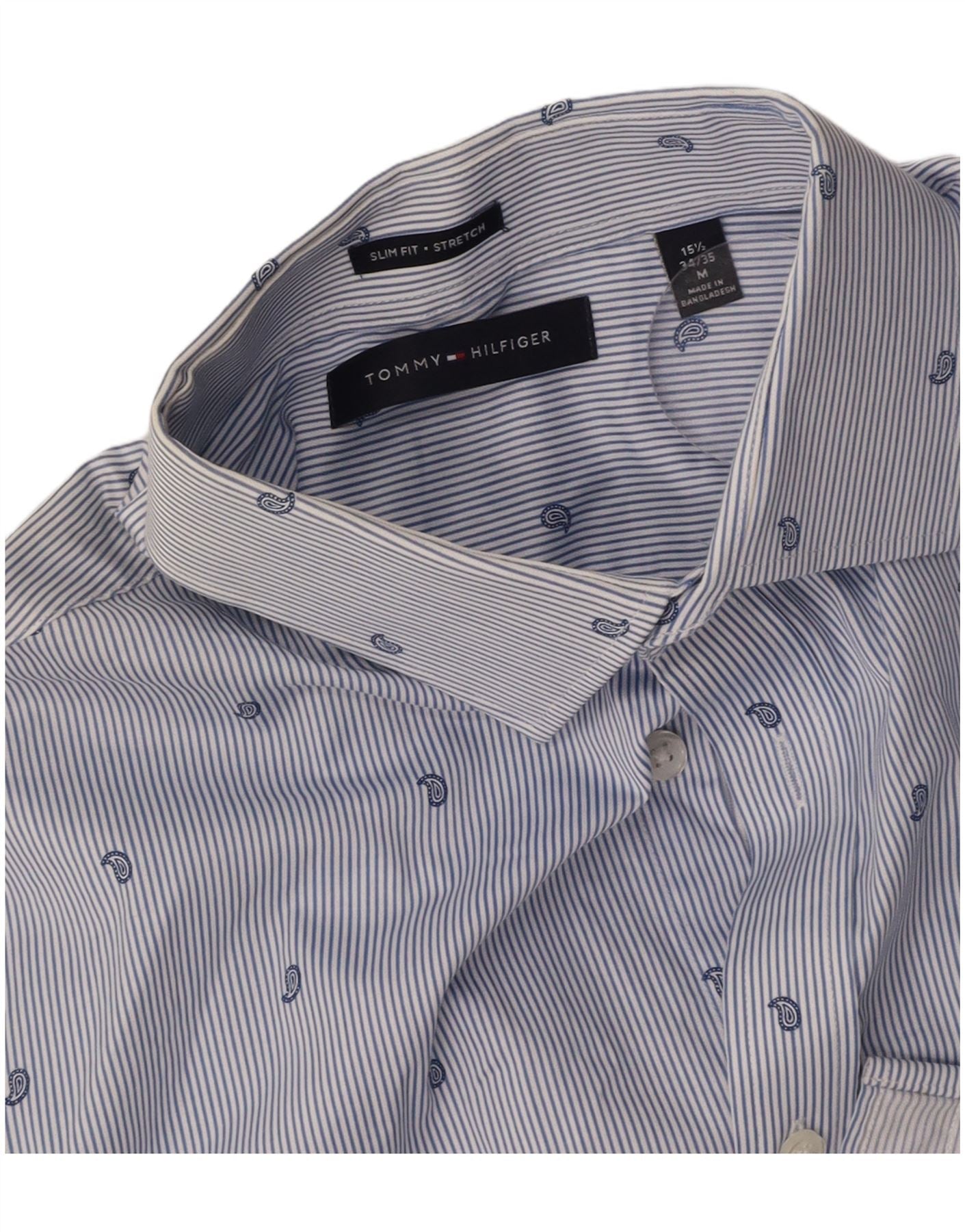 TOMMY HILFIGER Mens Stretch Shirt Size 15 1/2 Medium Blue Pinstripe