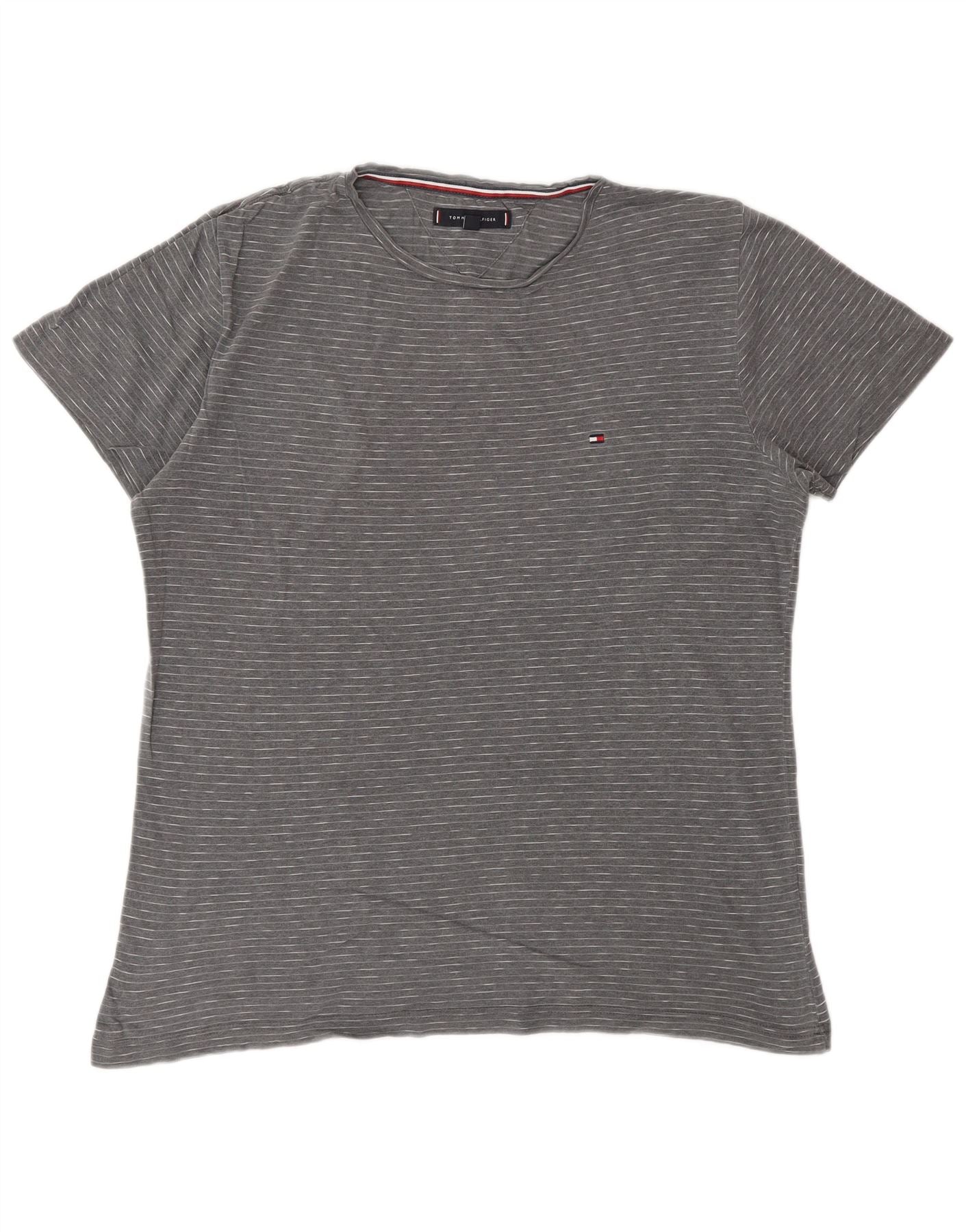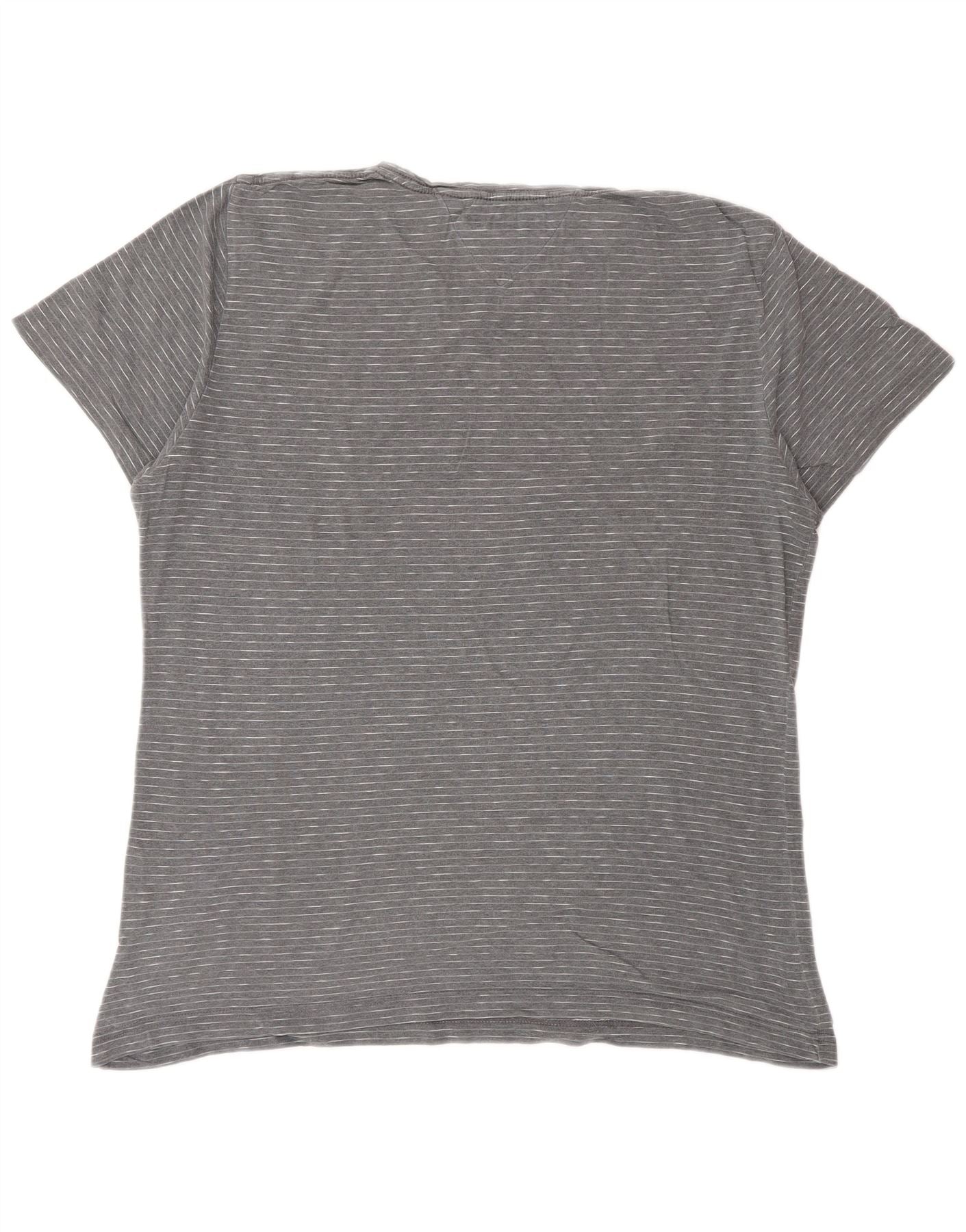 TOMMY HILFIGER Mens T-Shirt Top Large Grey Pinstripe