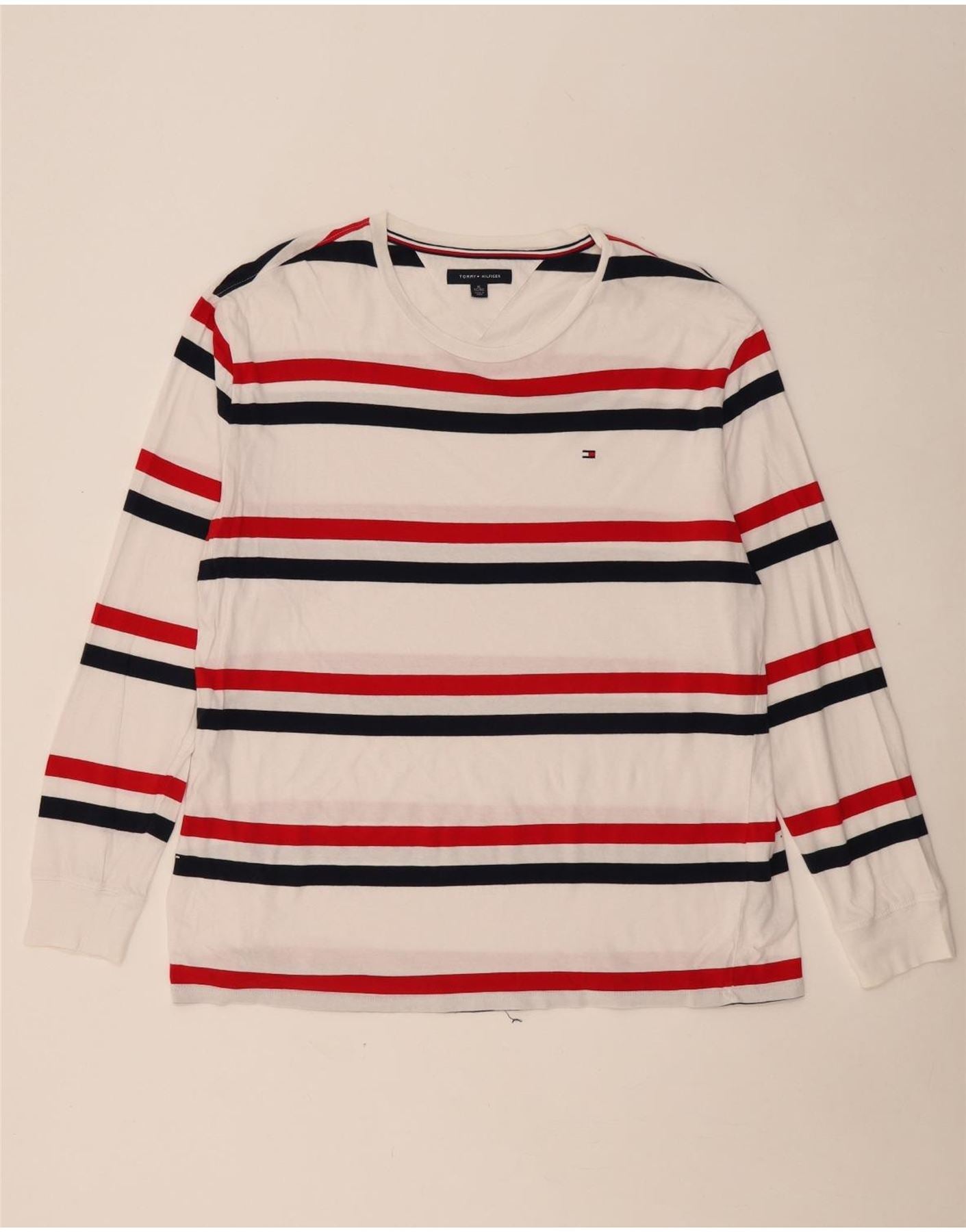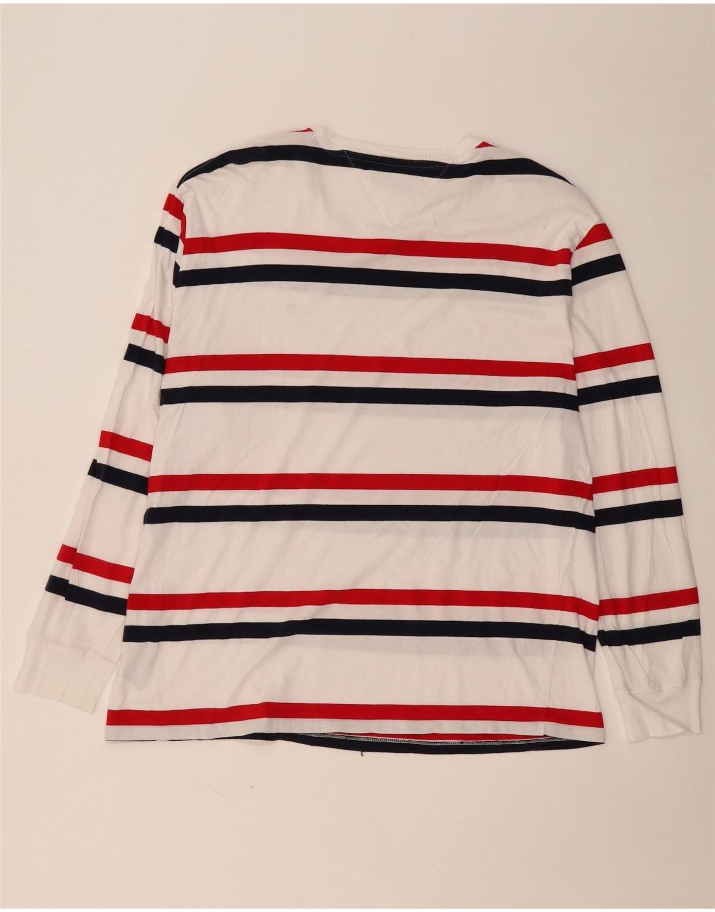TOMMY HILFIGER Mens Top Long Sleeve XL White Striped Cotton