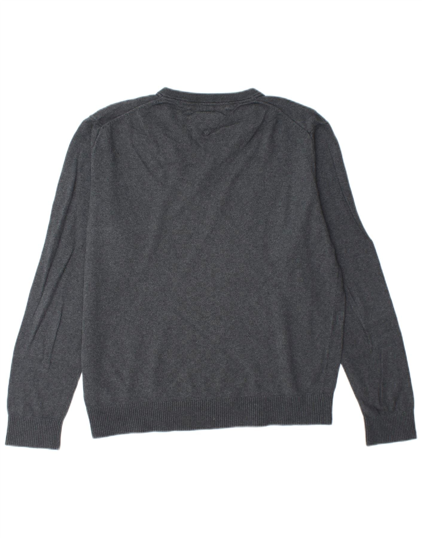 TOMMY HILFIGER Mens V-Neck Jumper Sweater Large Grey Cotton