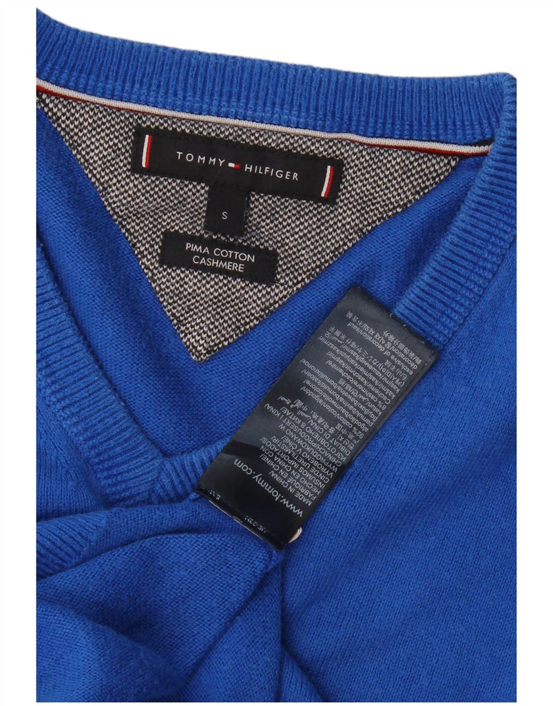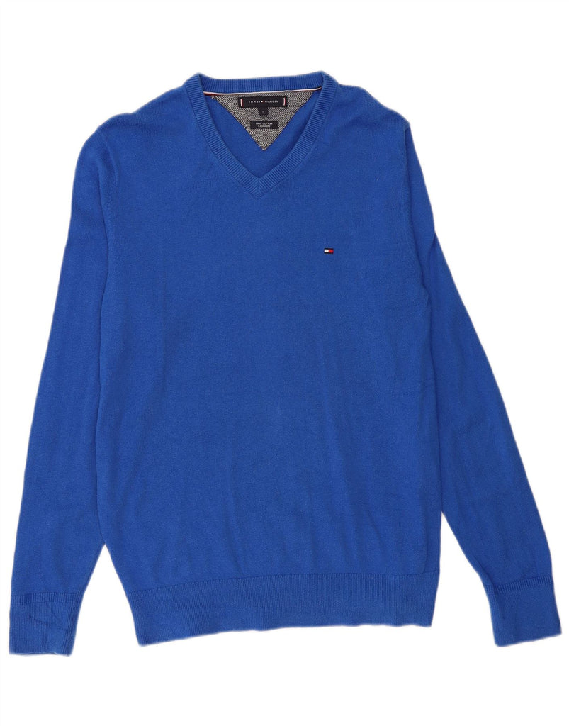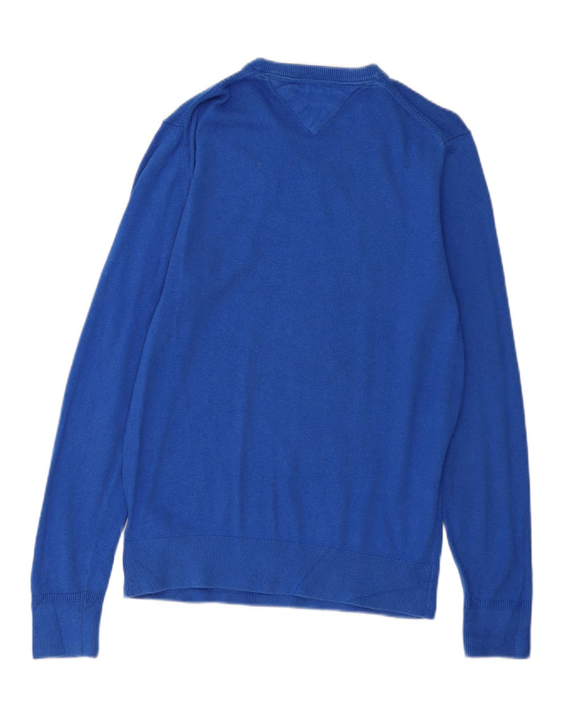 TOMMY HILFIGER Mens V-Neck Jumper Sweater Small Blue Cotton