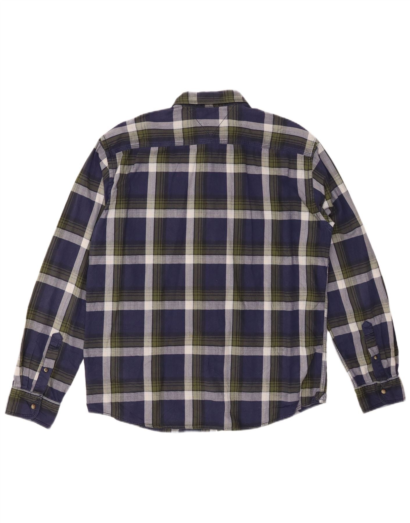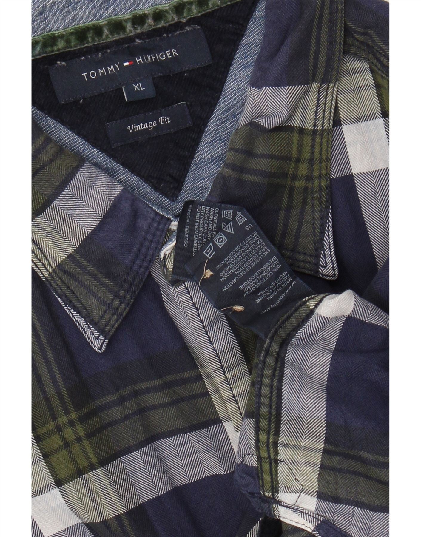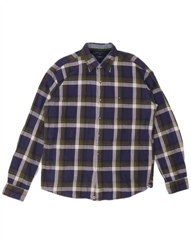 TOMMY HILFIGER Mens Vintage Fit Flannel Shirt XL Navy Blue Check Cotton