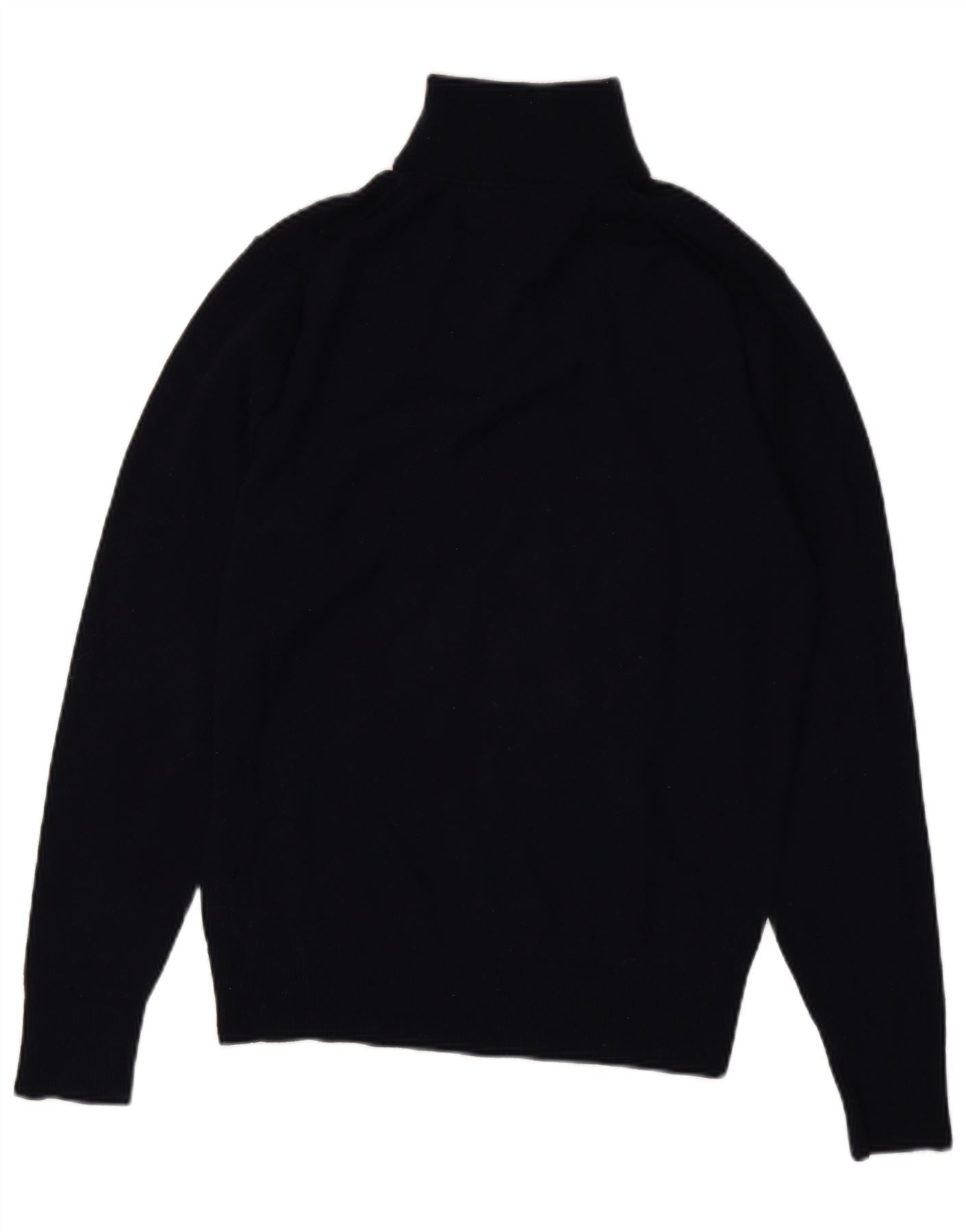 TOMMY HILFIGER Mens Zip Neck Jumper Sweater Large Navy Blue Lambswool