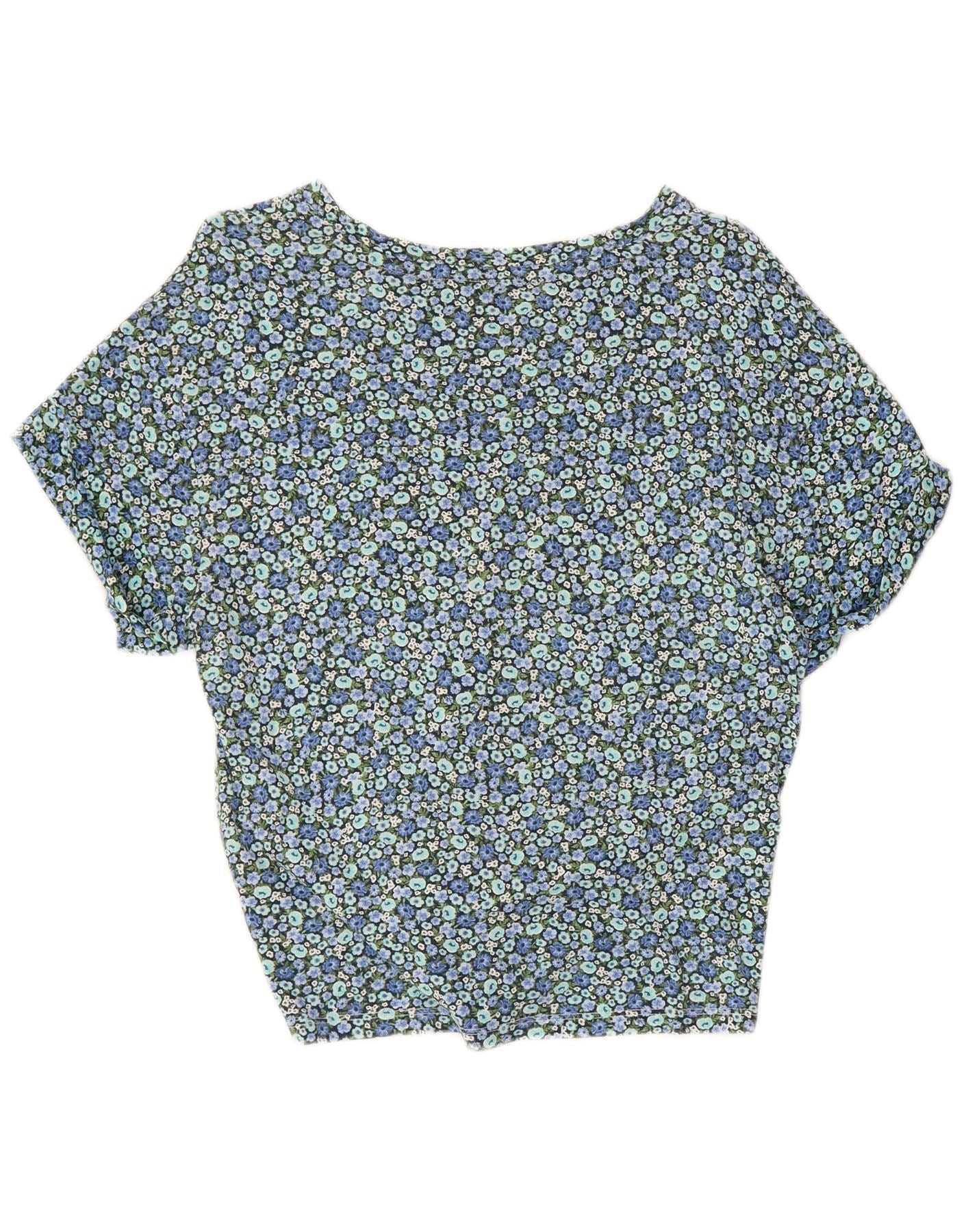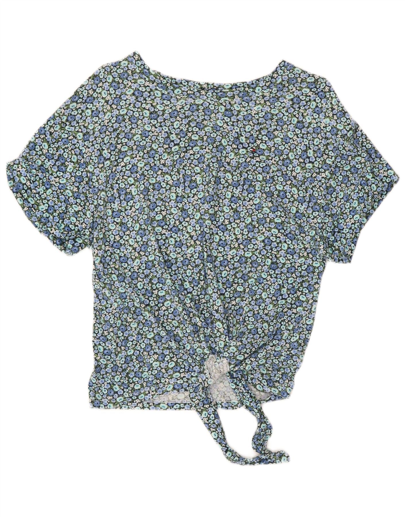TOMMY HILFIGER Womens Crop Blouse Top UK 10 Small Blue Floral Cotton