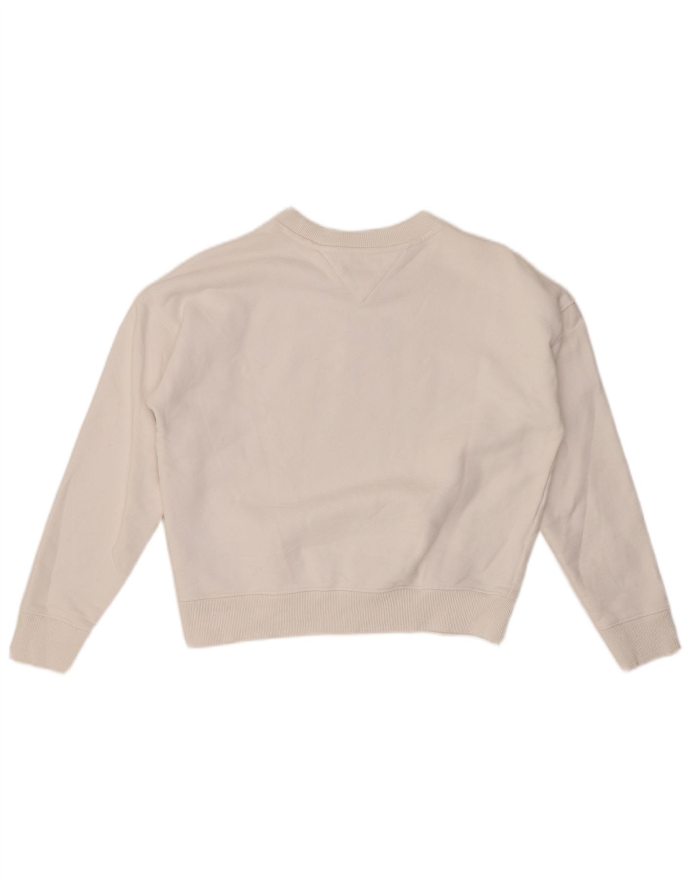 TOMMY HILFIGER Womens Crop Oversized Sweatshirt Jumper UK 6 XS White