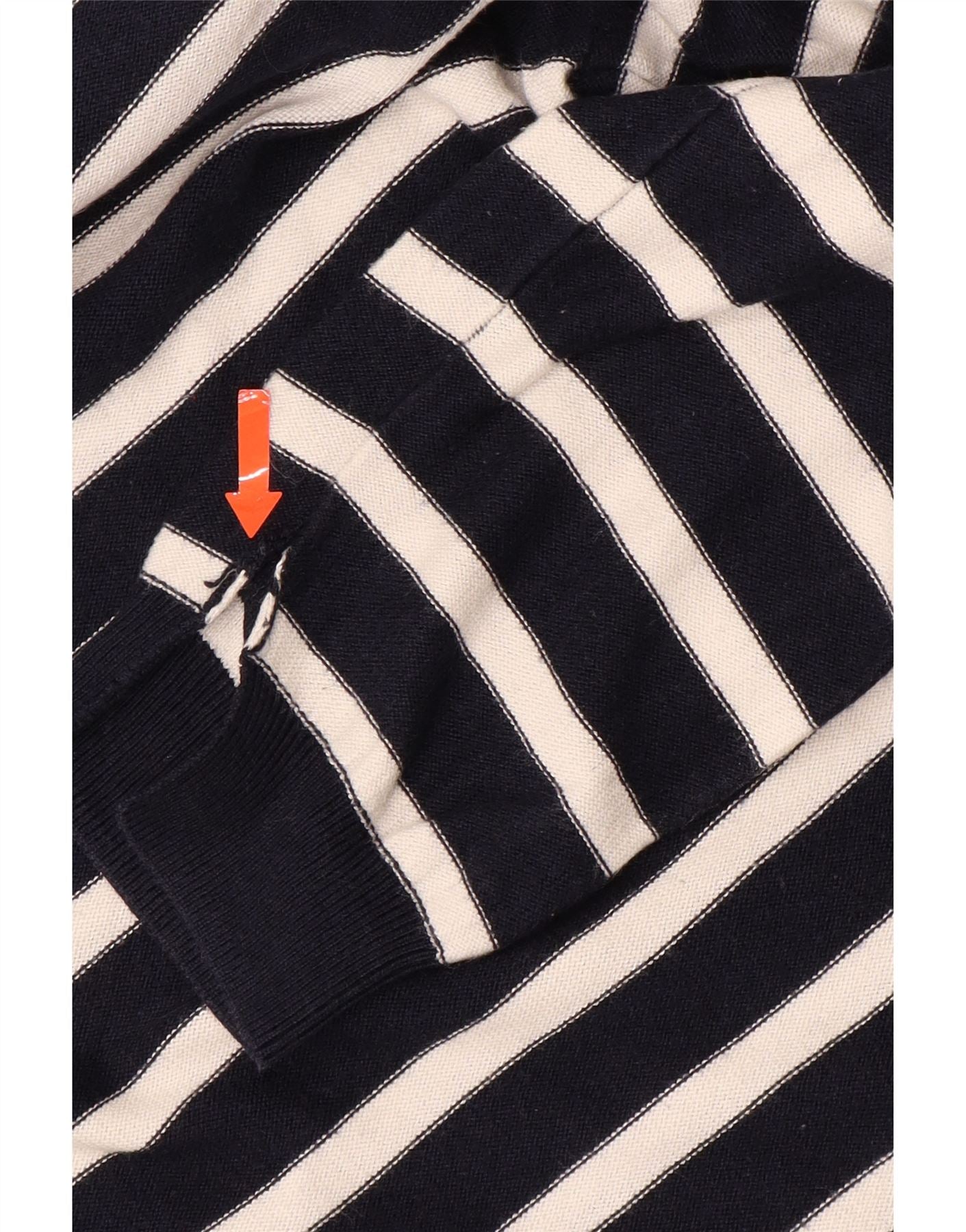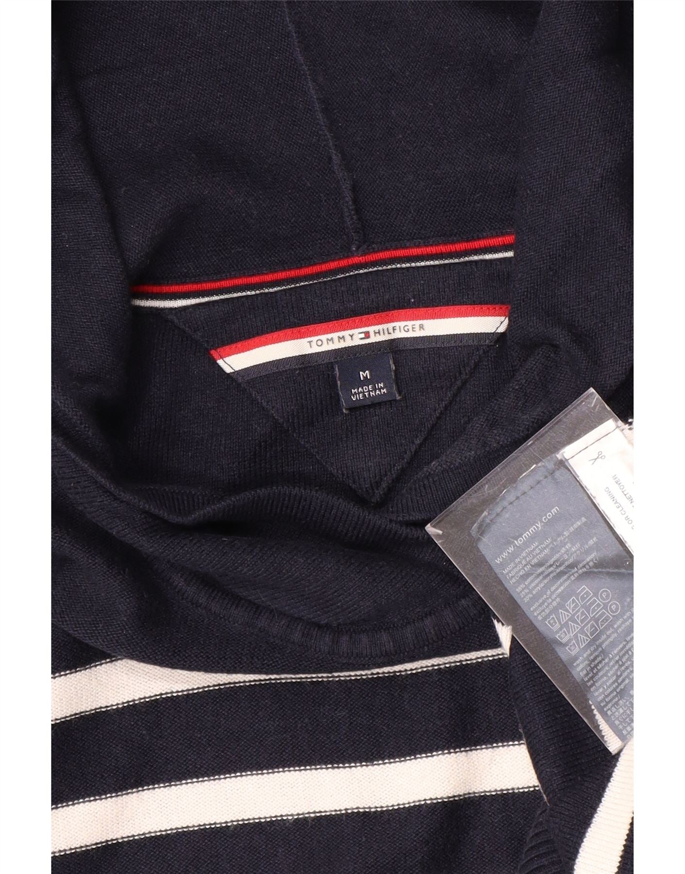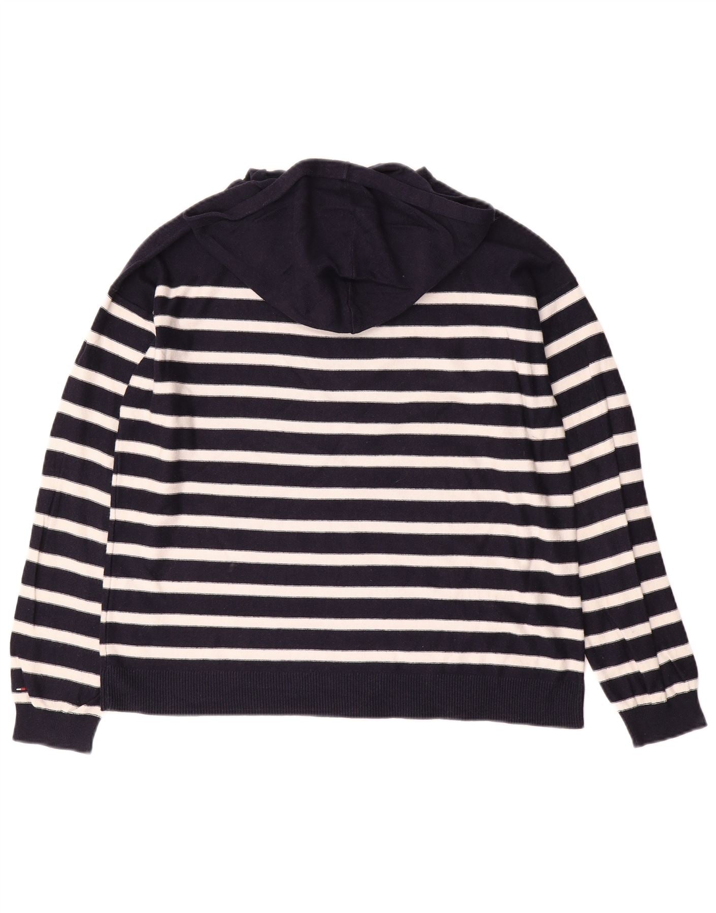 TOMMY HILFIGER Womens Hooded Jumper Sweater UK 14 Medium Navy Blue Striped
