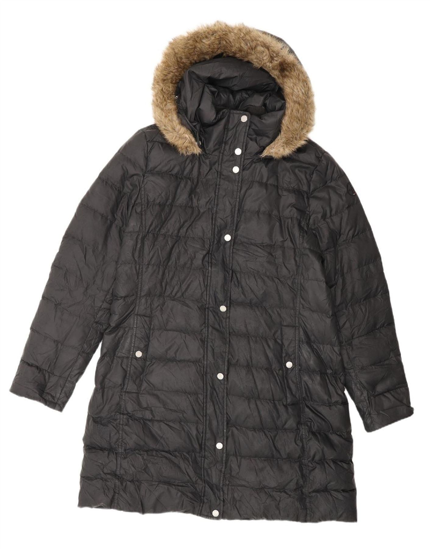 TOMMY HILFIGER Womens Hooded Padded Coat UK 18 XL Black Polyester