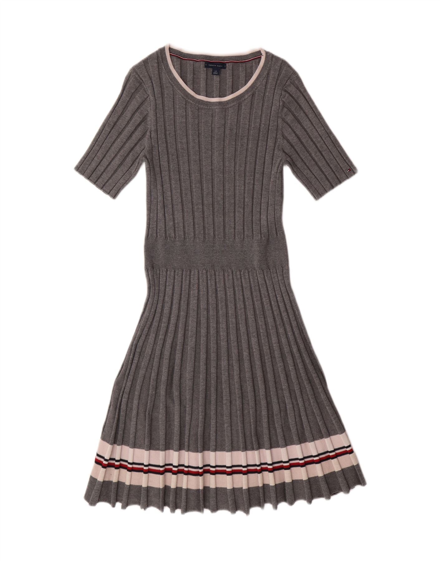 TOMMY HILFIGER Womens Jumper Dress UK 14 Large Grey Striped Viscose