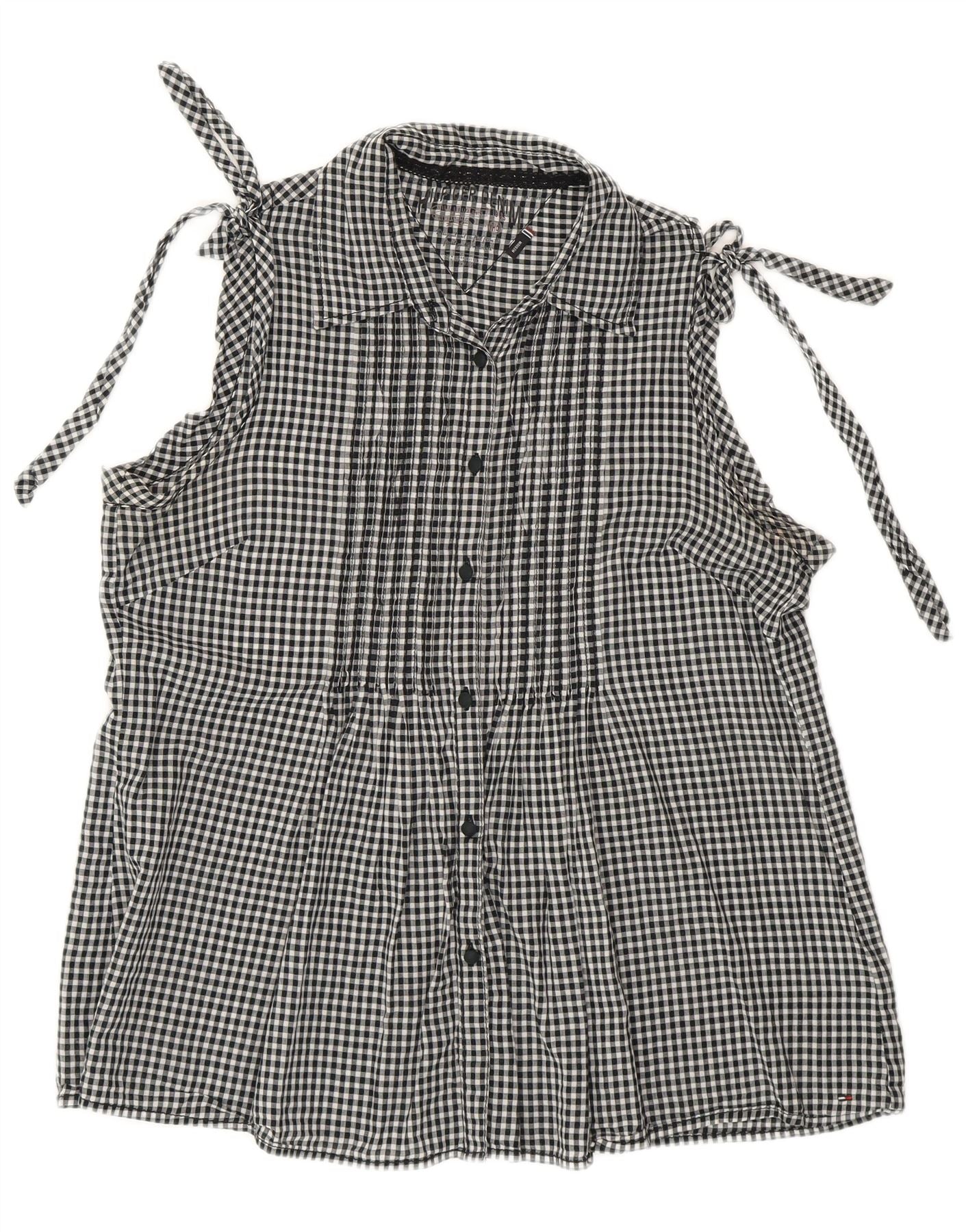 TOMMY HILFIGER Womens Sleeveless Shirt Blouse UK 14 Medium Black Gingham