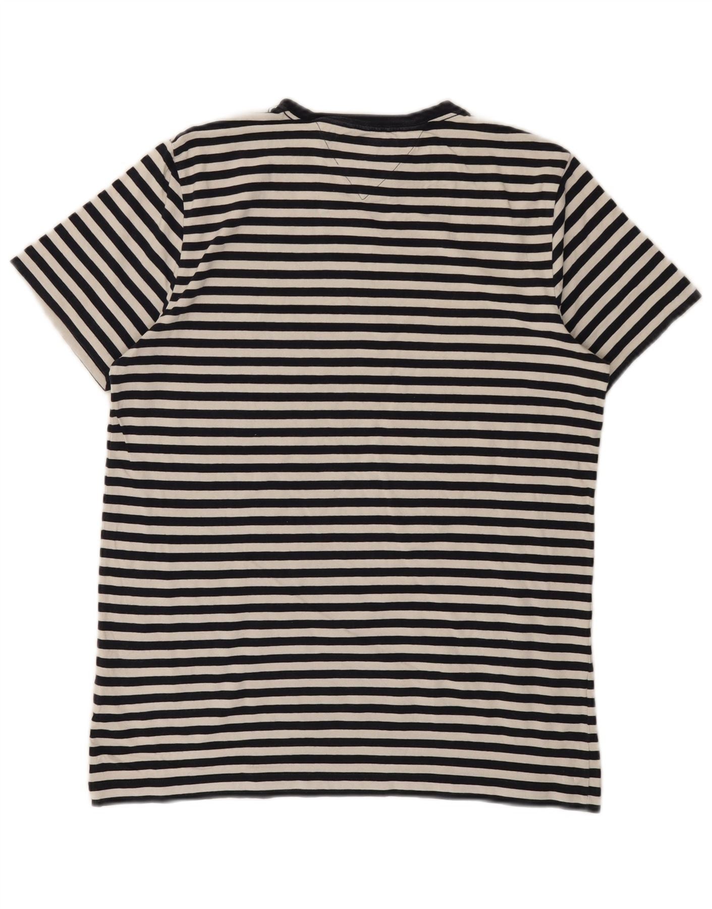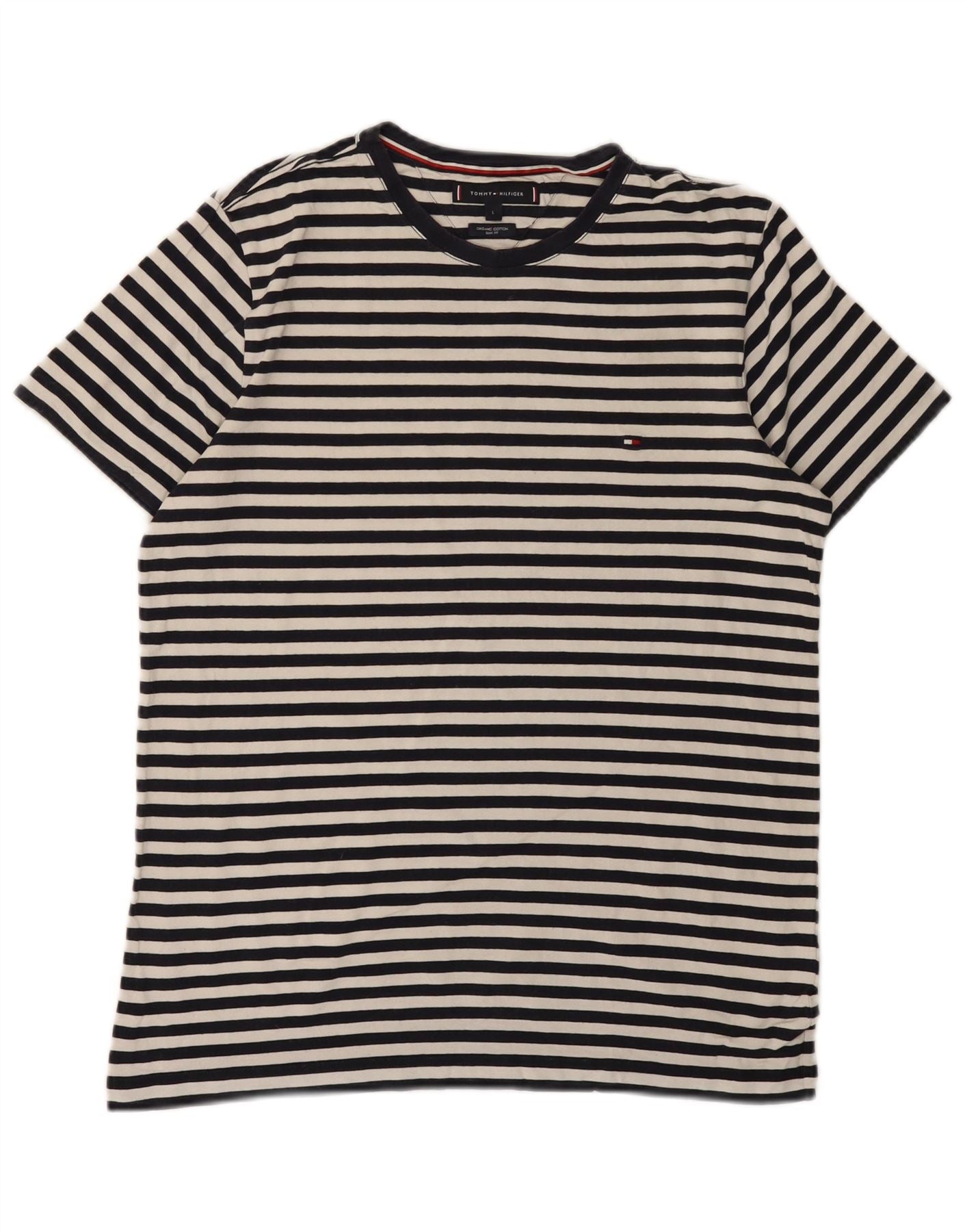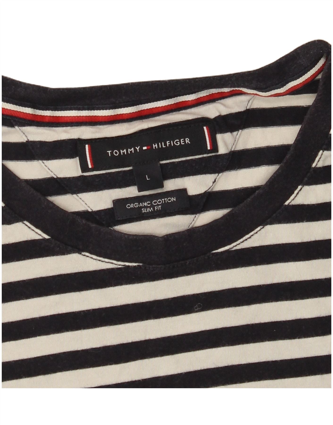 TOMMY HILFIGER Womens Slim Fit T-Shirt Top UK 14 Large Black Striped