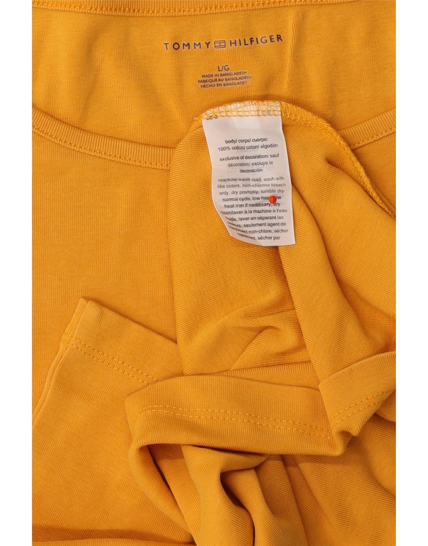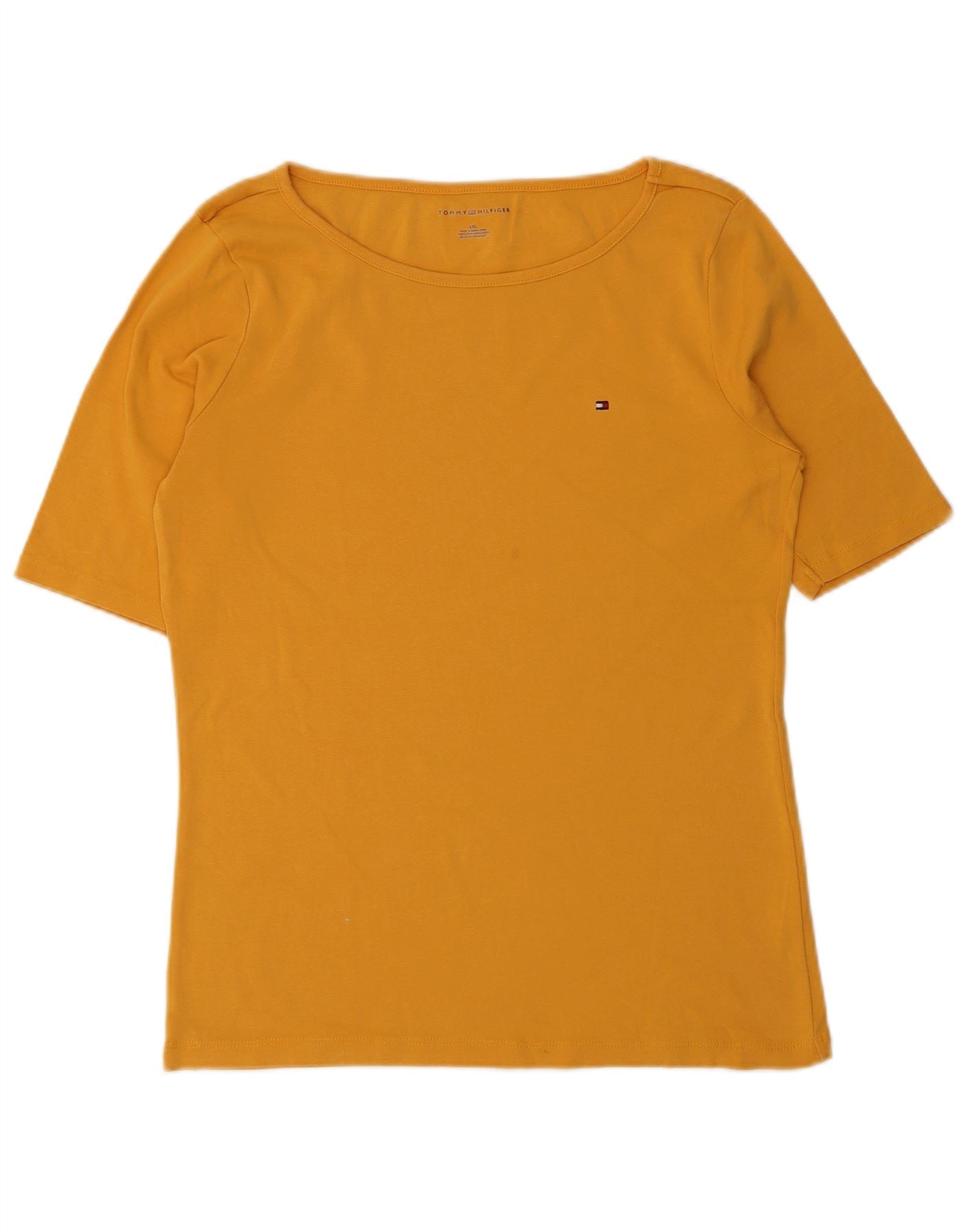TOMMY HILFIGER Womens T-Shirt Top UK 14 Large Yellow Cotton