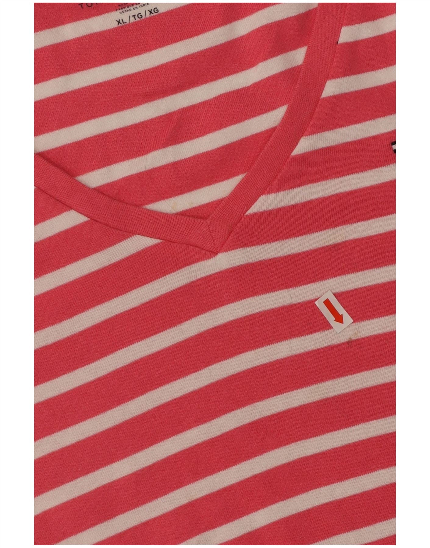 TOMMY HILFIGER Womens T-Shirt Top UK 18 XL Pink Striped Cotton