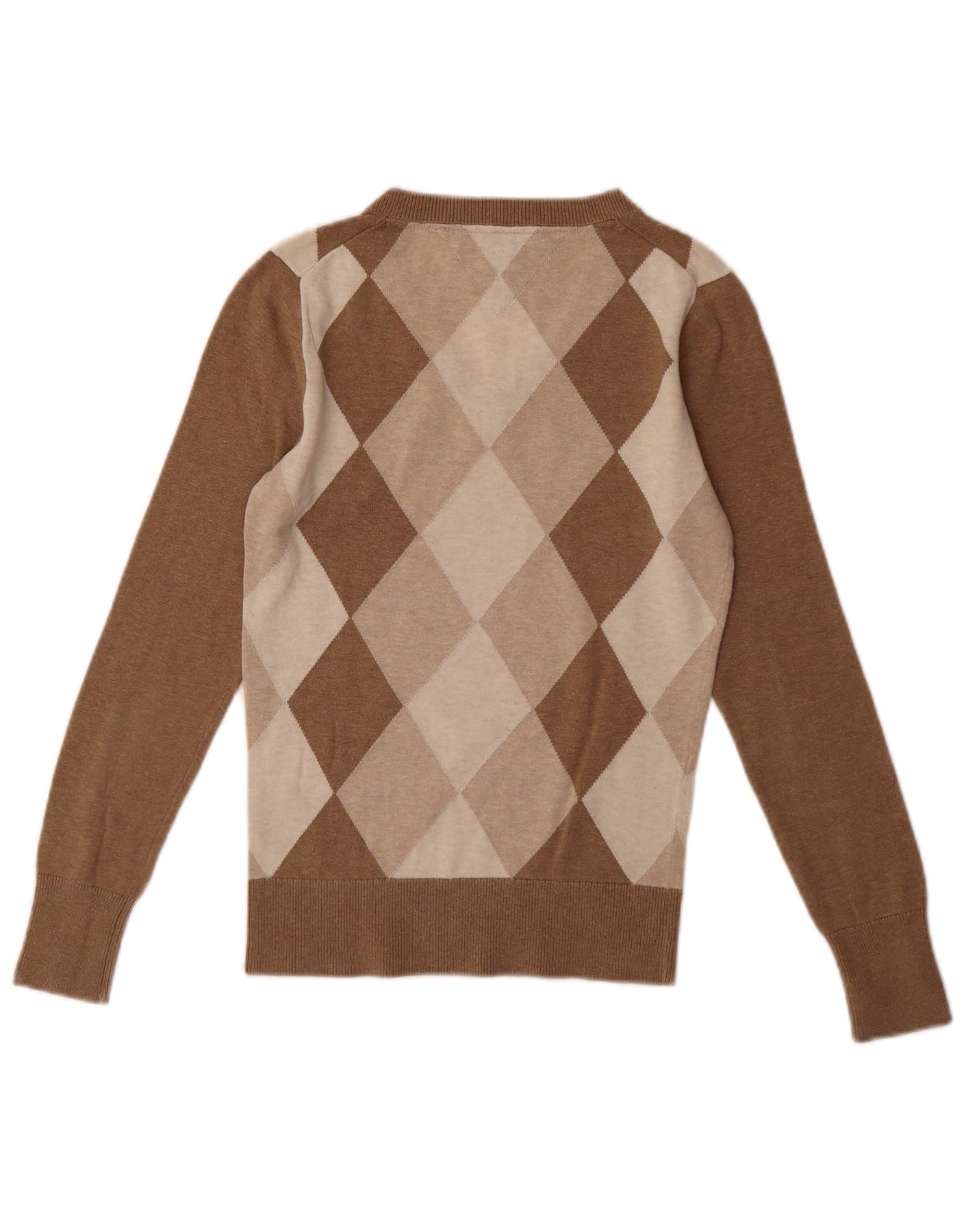 TOMMY HILFIGER Womens V-Neck Jumper Sweater UK 10 Small Brown