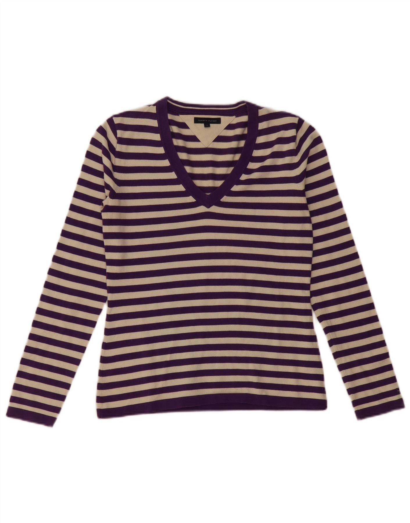 TOMMY HILFIGER Womens V-Neck Jumper Sweater UK 10 Small Purple Striped