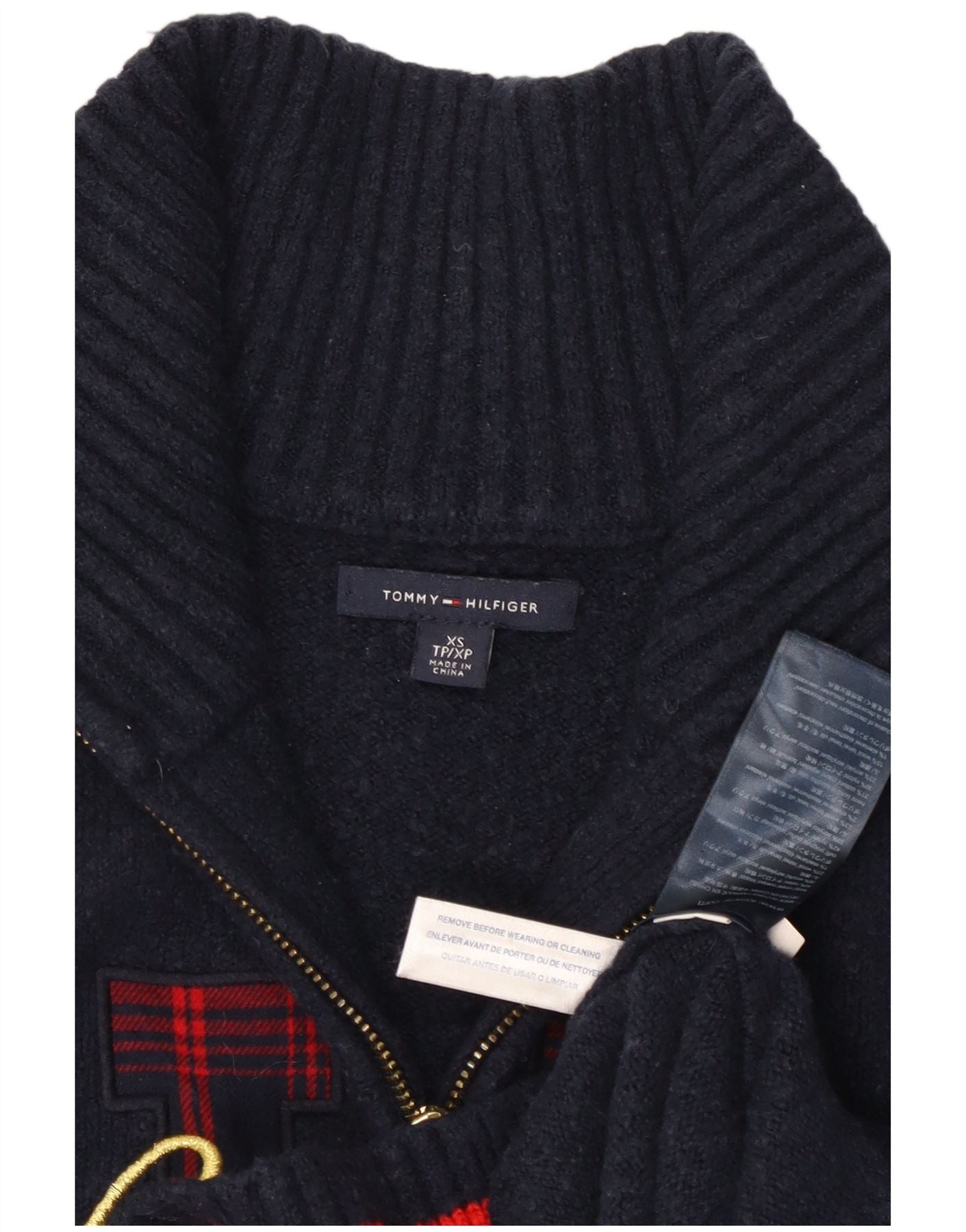 TOMMY HILFIGER Womens Zip Neck Jumper Sweater UK 6 XS Navy Blue Striped