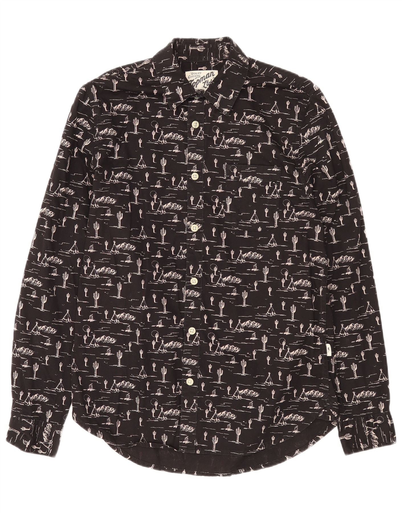 TOPMAN Mens Abstract Pattern Shirt Small Black Cotton