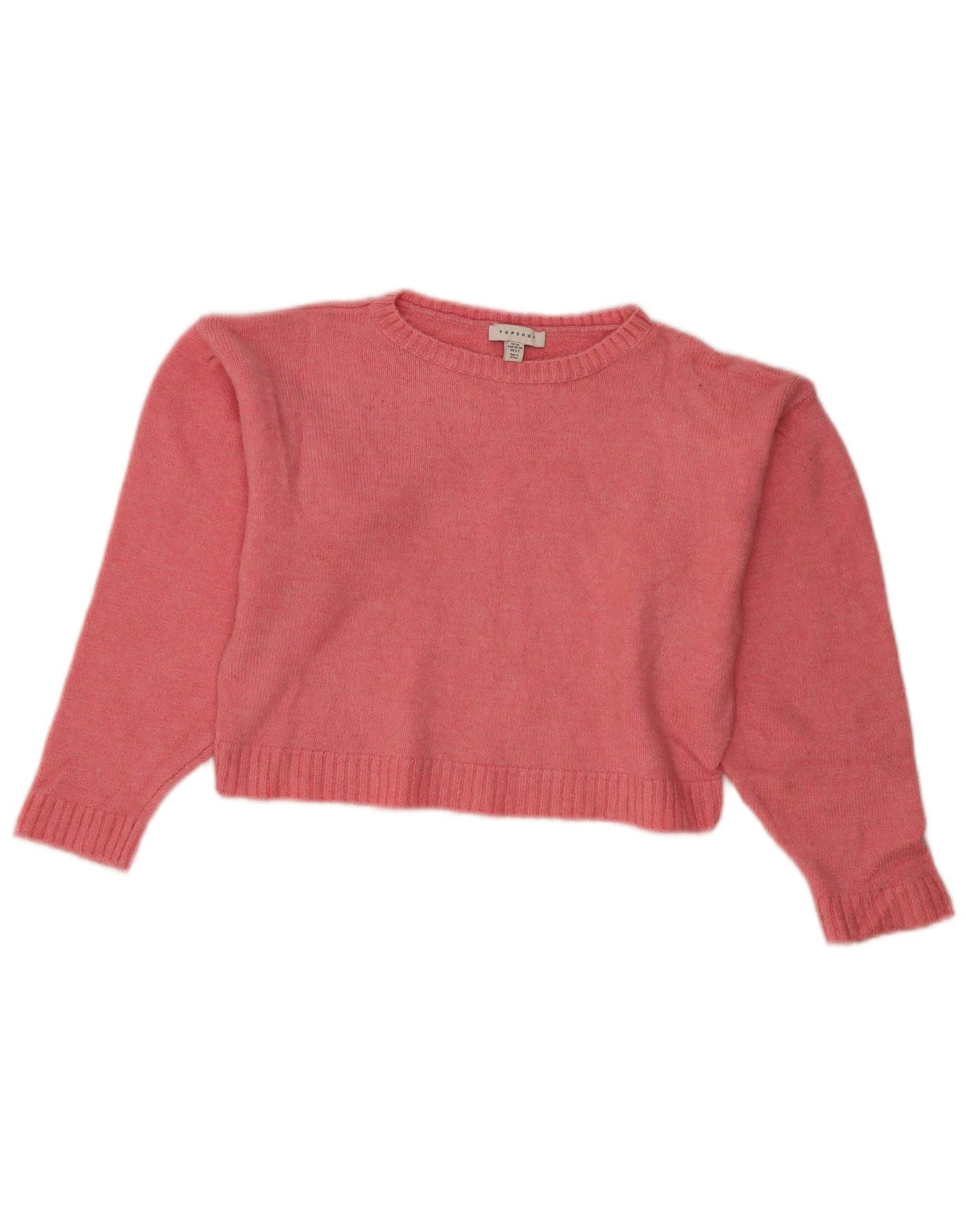 TOPSHOP Womens Crop Oversized Crew Neck Jumper Sweater UK 6 XS Pink