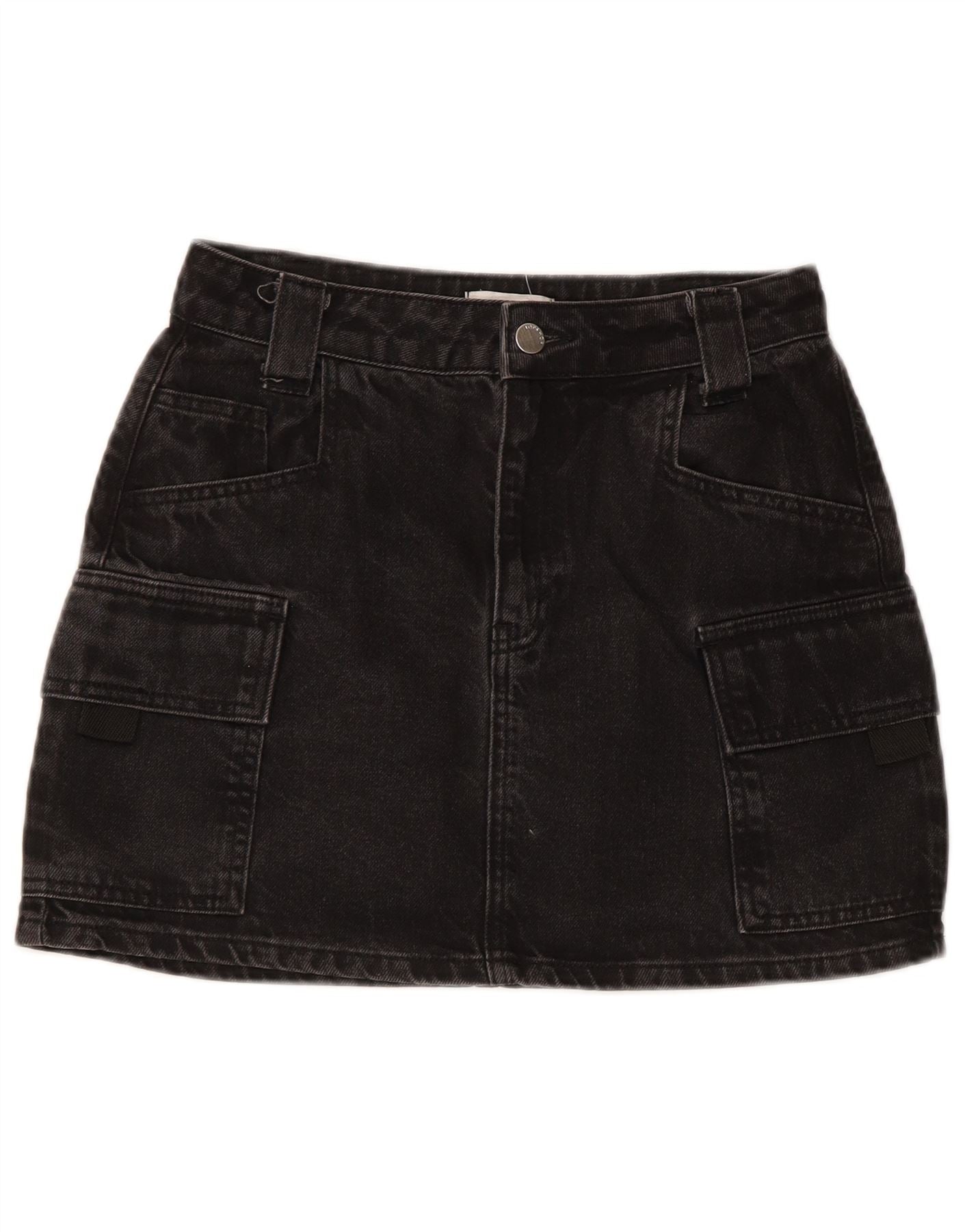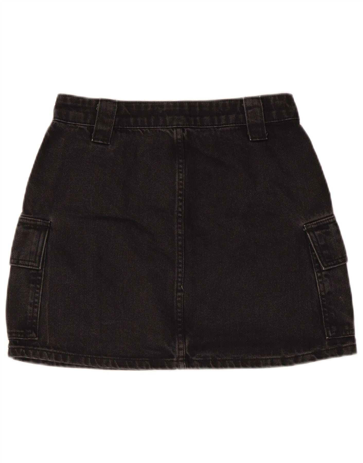 TOPSHOP Womens Denim Mini Cargo Skirt UK 8 Small W26 Black Cotton