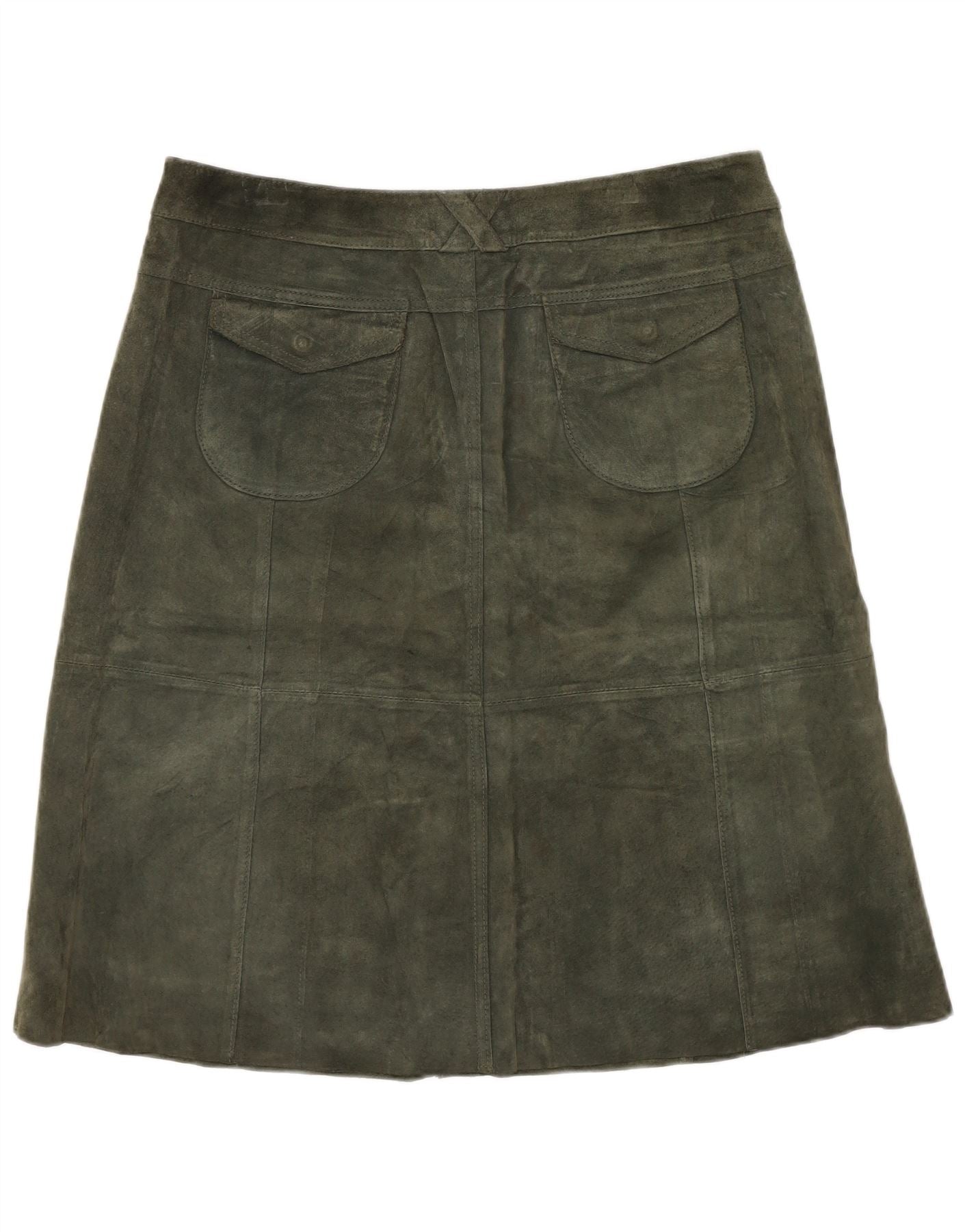 TOPSHOP Womens Suede Skirt UK 12 Medium W32 Khaki Leather