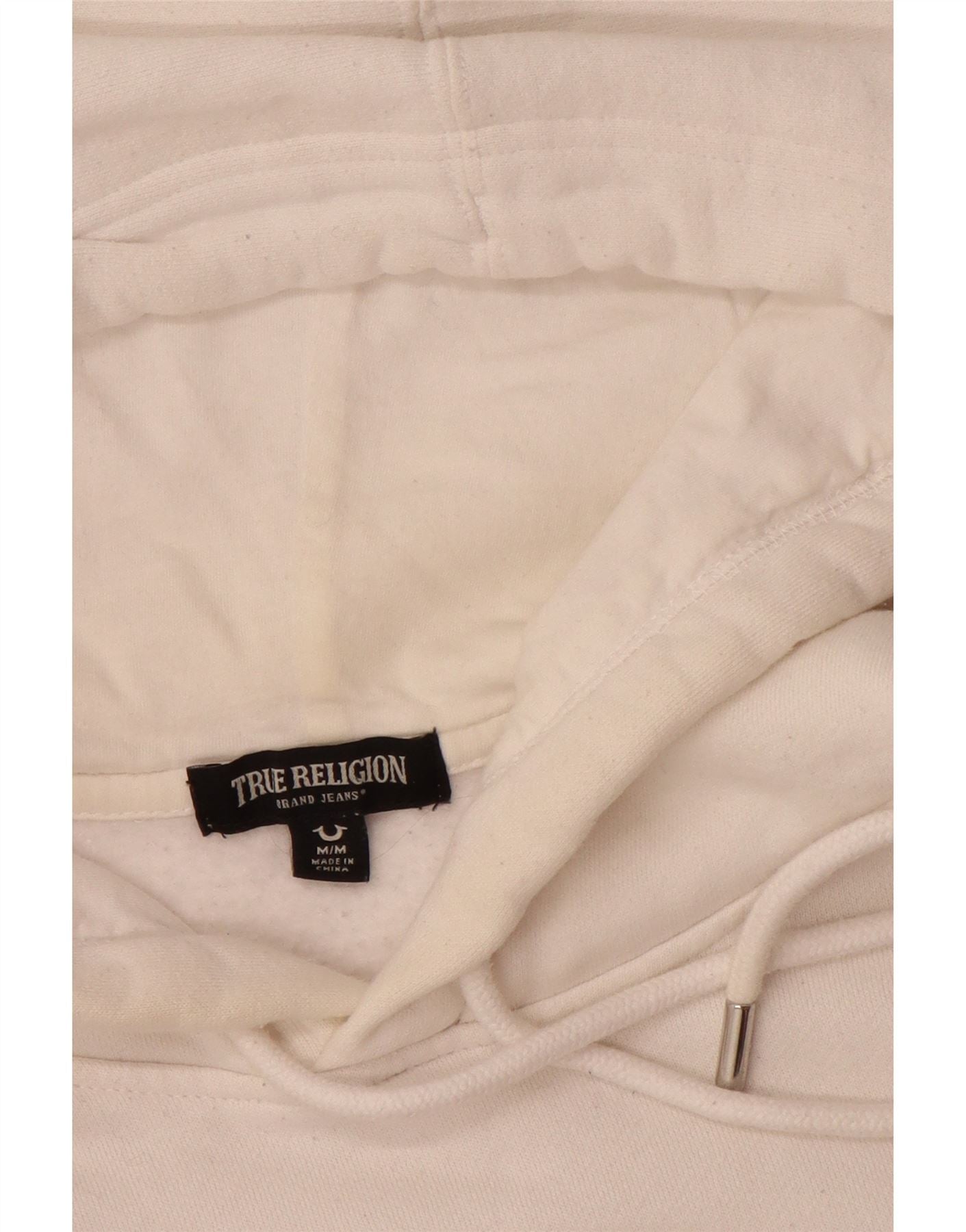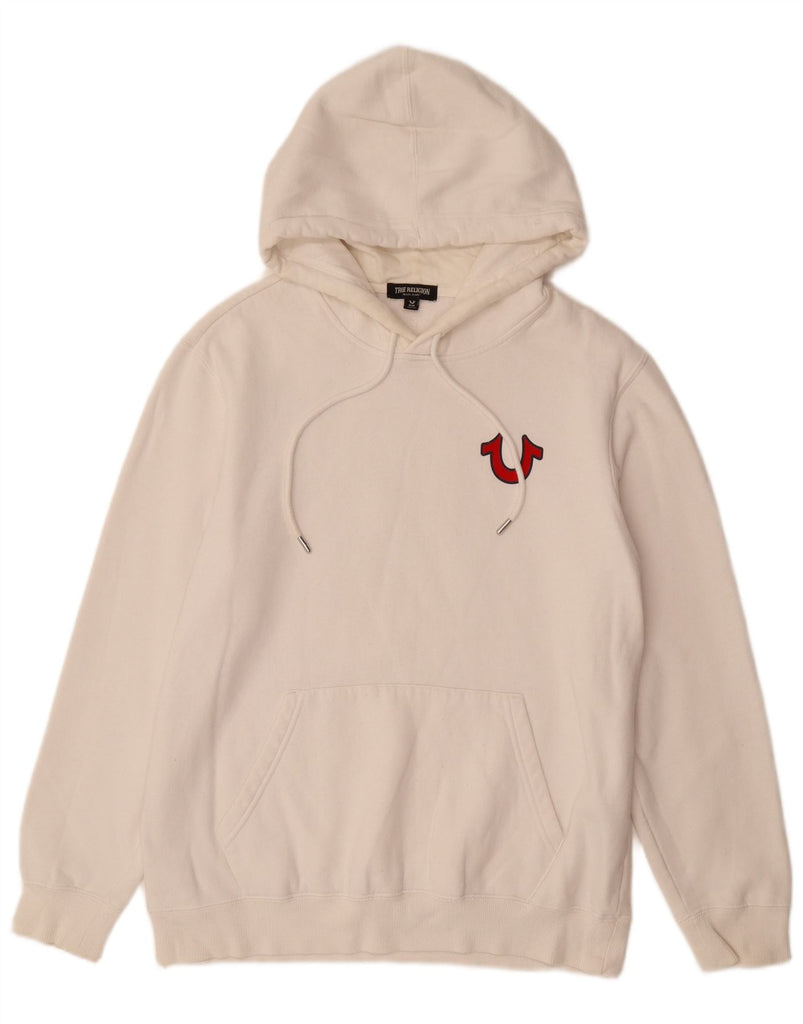 TRUE RELIGION Mens Graphic Hoodie Jumper Medium White Cotton
