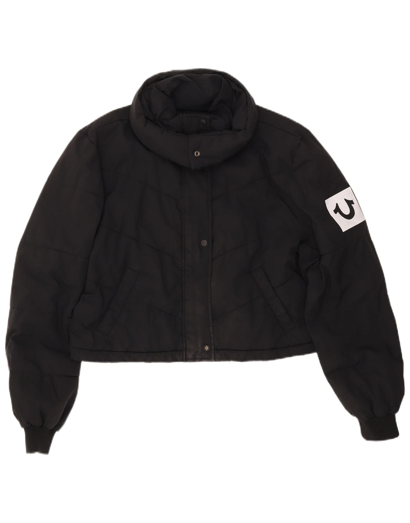 TRUE RELIGION Womens Crop Padded Jacket UK 16 Large Black Polyester
