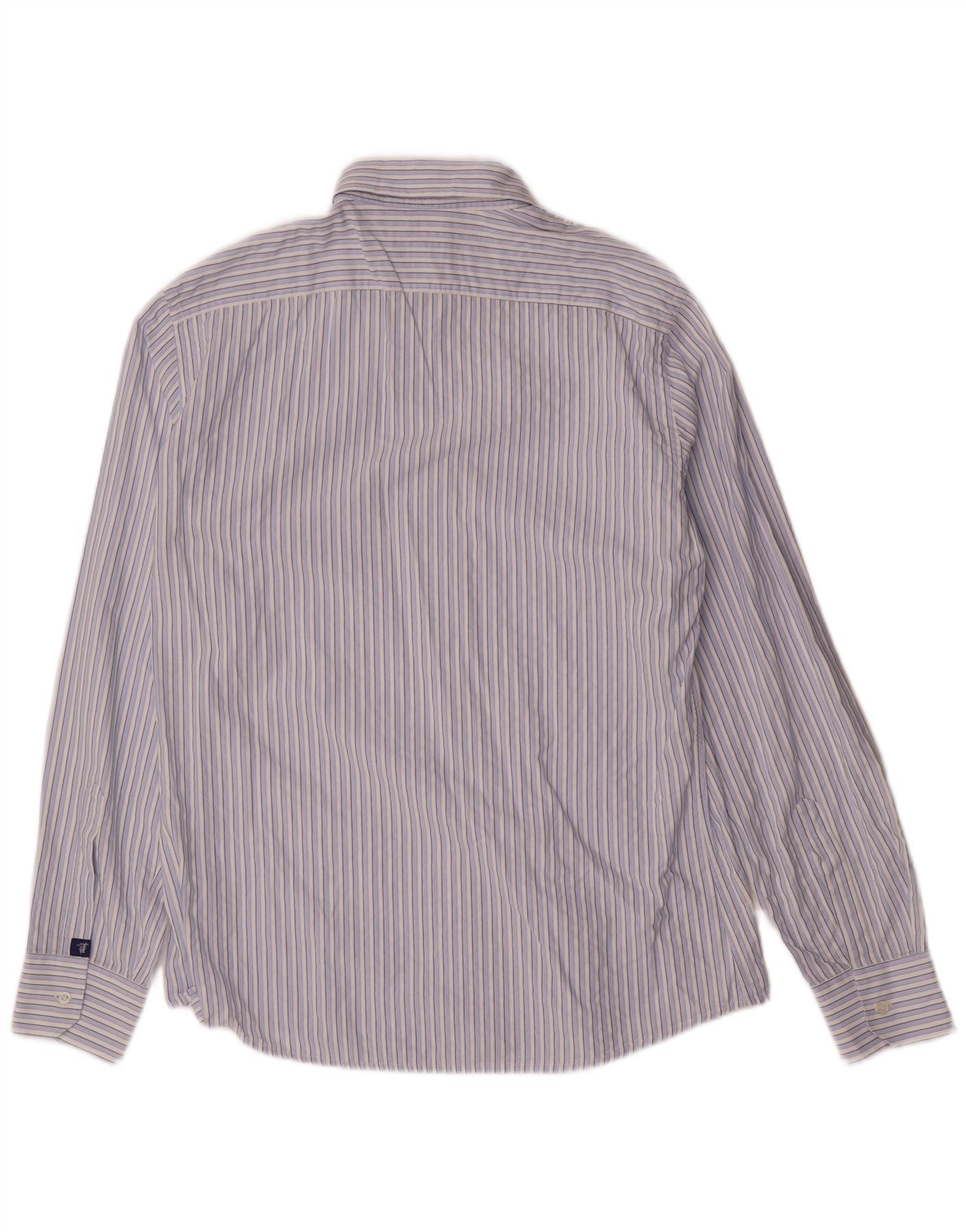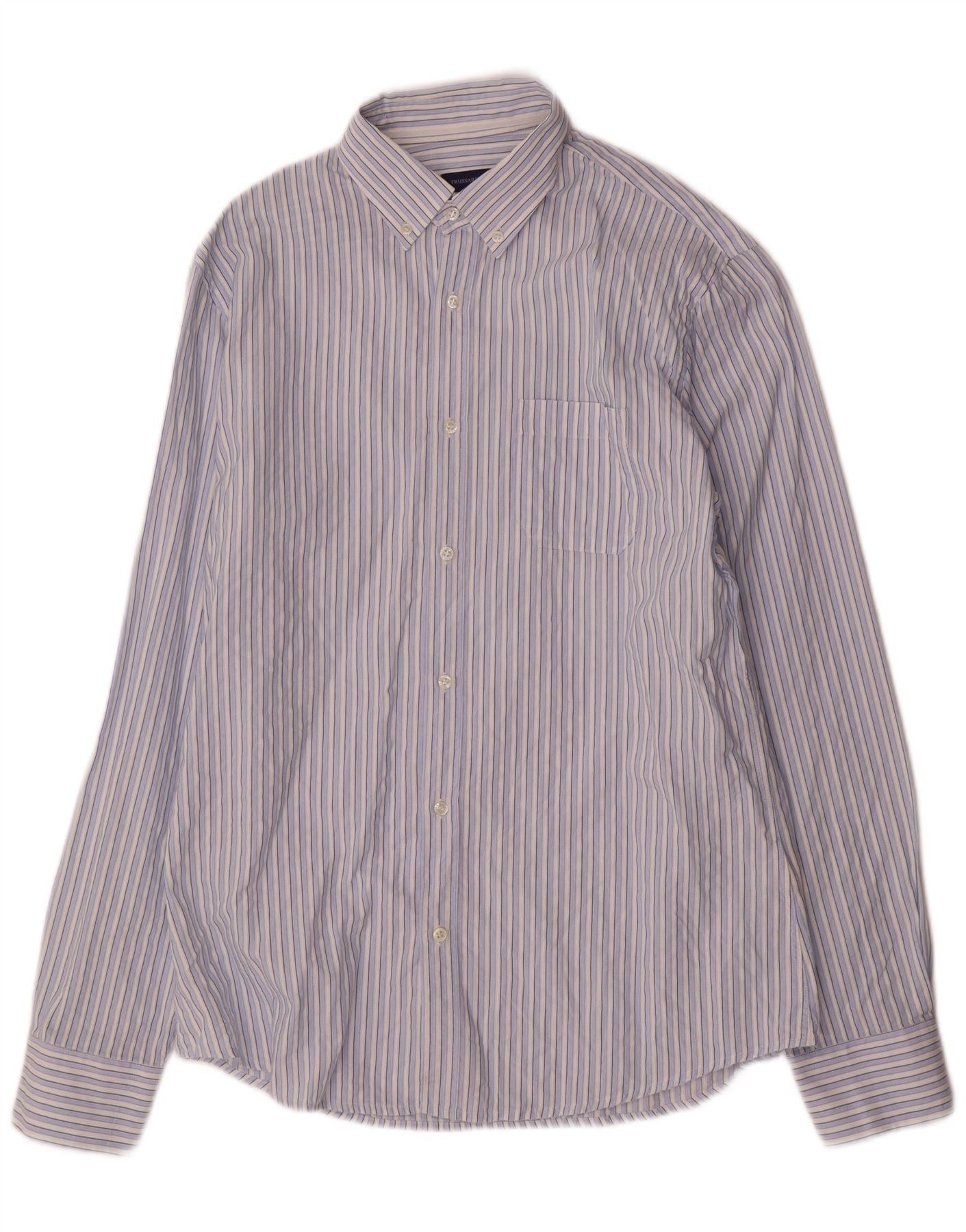 TRUSSARDI JEANS Mens Shirt Medium Blue Striped Cotton