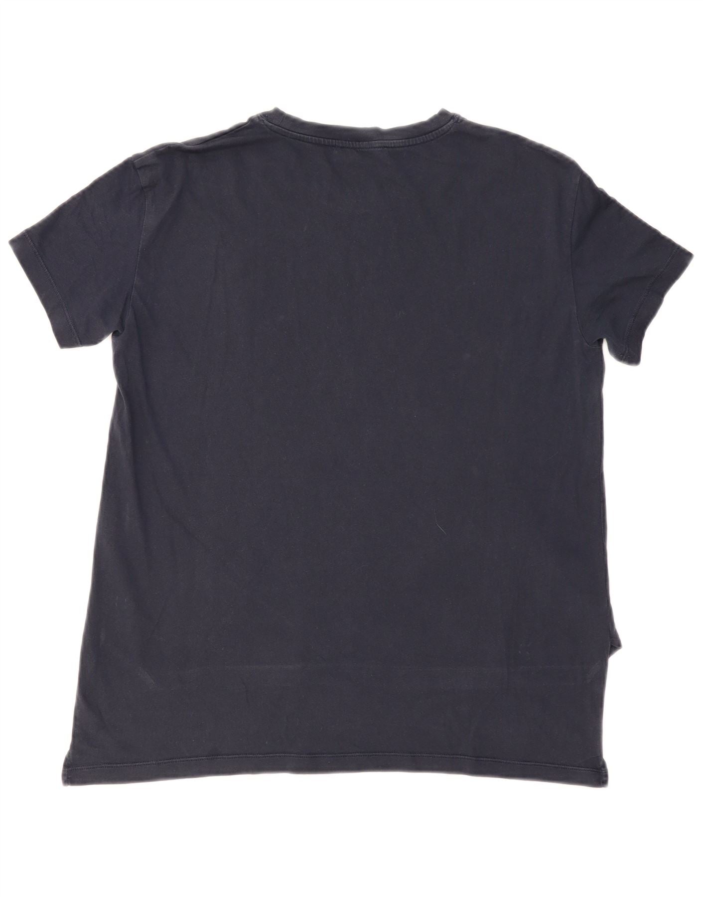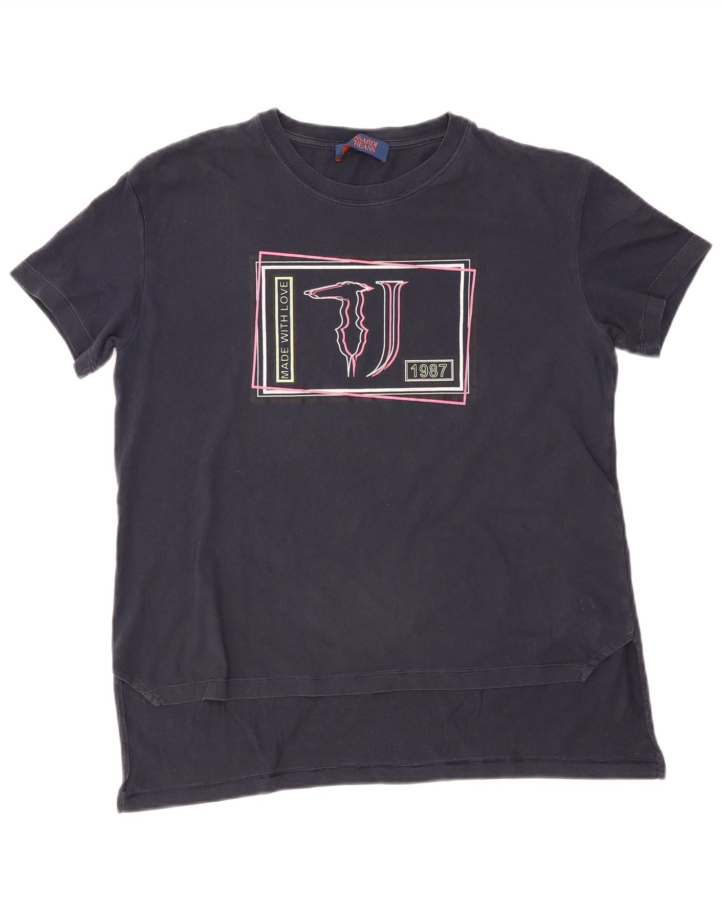 TRUSSARDI JEANS Womens Graphic T-Shirt Top UK 14 Medium Navy Blue Cotton