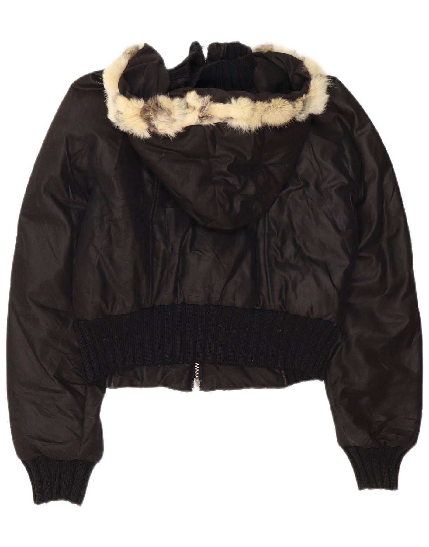 TRUSSARDI JEANS Womens Hooded Padded Jacket IT 44 Medium Black Polyamide