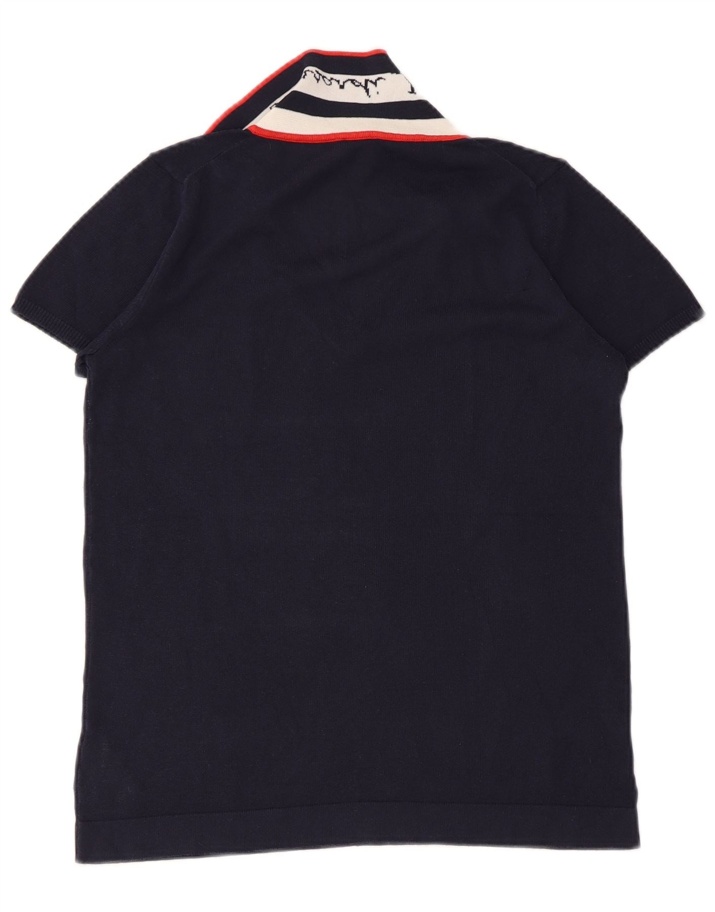 TRUSSARDI JEANS Womens Polo Neck Jumper Sweater UK 14 Large Navy Blue