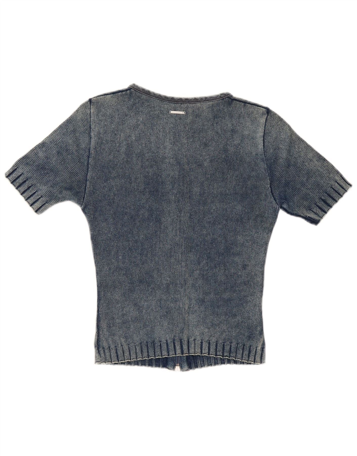 Trussardi Jeans Womens Short Sleeve Cardigan Sweater UK 12 Medium Blue