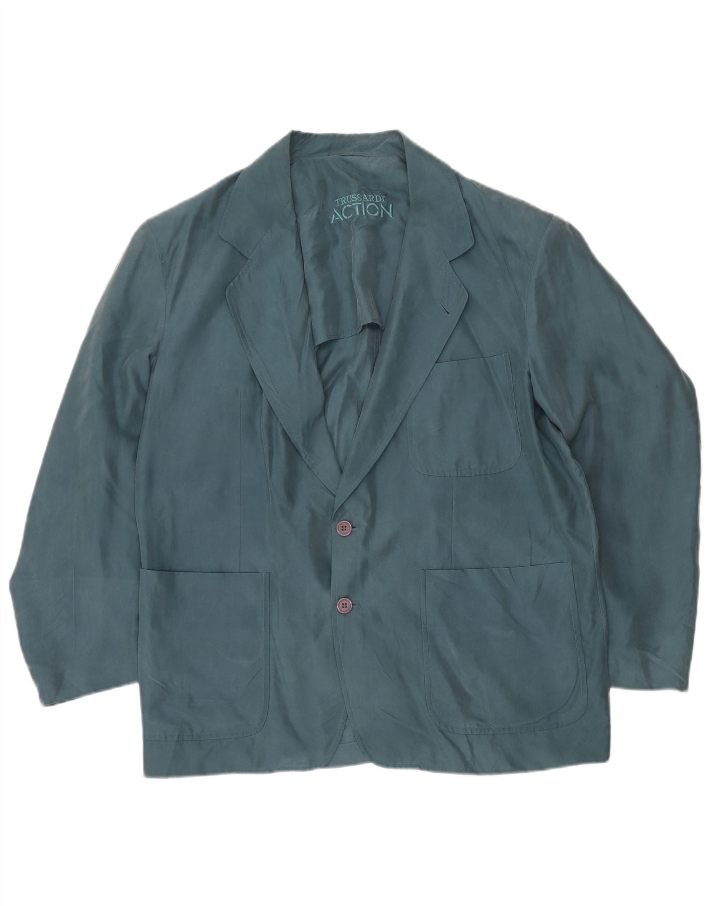 TRUSSARDI Mens 2 Button Blazer Jacket IT 54 2XL Blue Silk