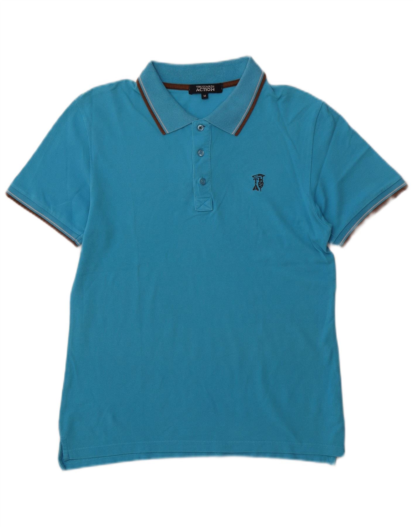 TRUSSARDI Mens Polo Shirt Medium Blue Cotton