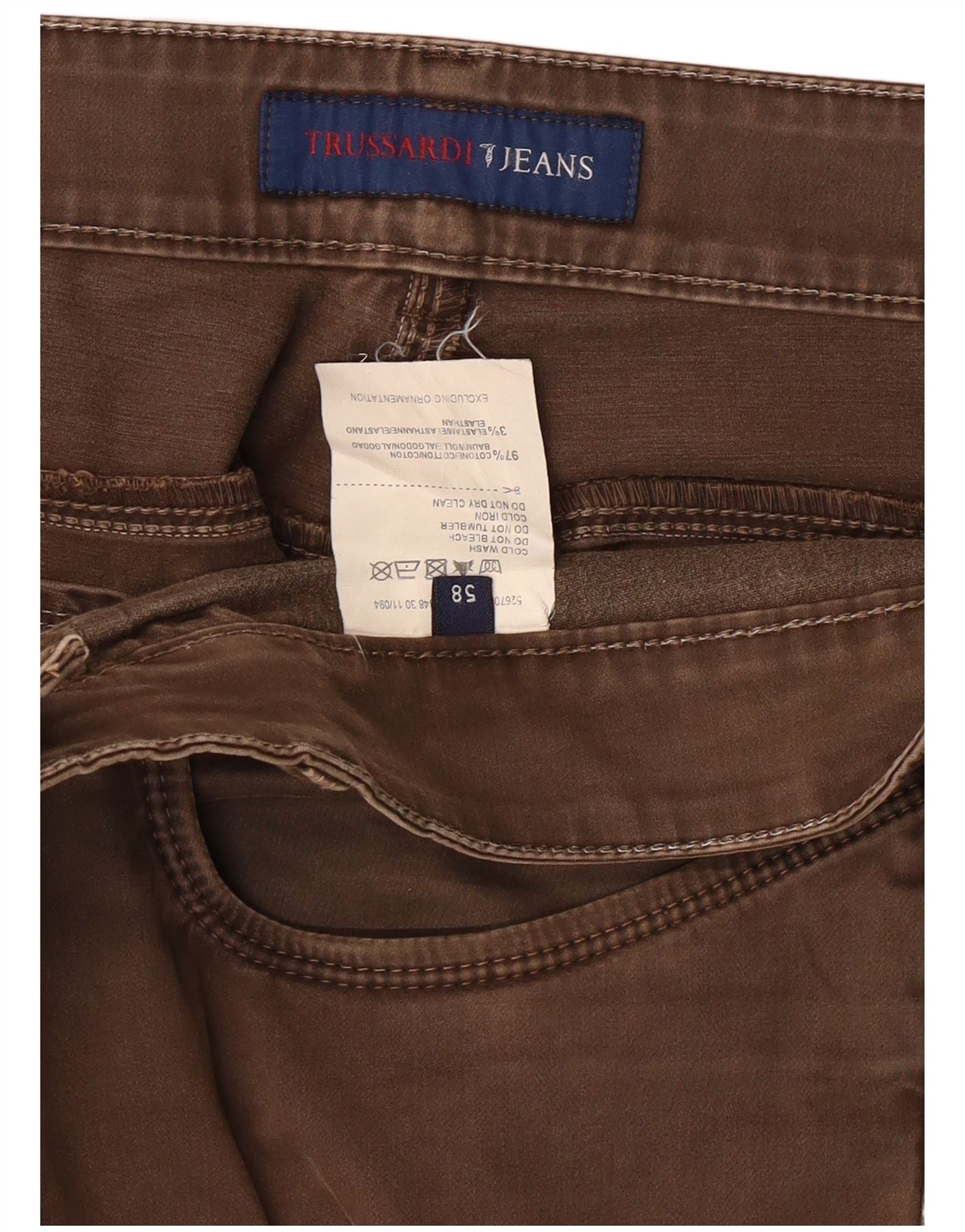 TRUSSARDI Mens Straight Casual Trousers IT 58 3XL W40 L36 Brown Cotton