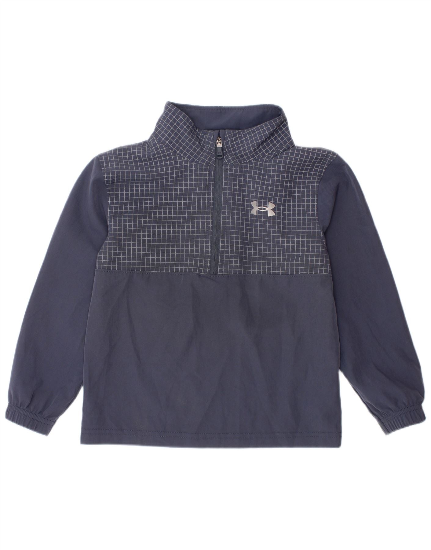 UNDER ARMOUR Boys Graphic Pullover Tracksuit Top 2-3 Years Navy Blue Check