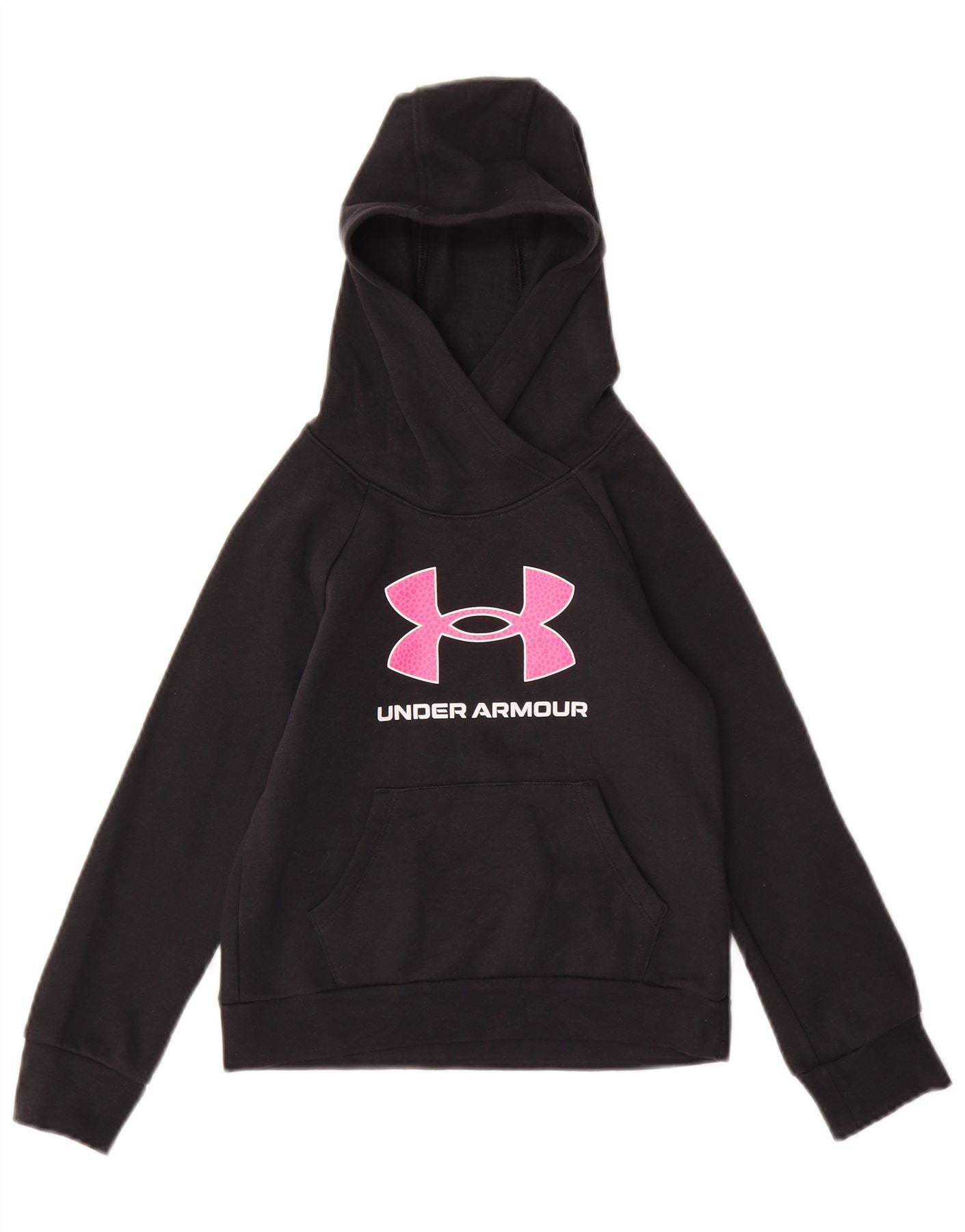 UNDER ARMOUR Girls Graphic Hoodie Jumper 7-8 Years Small Black Cotton