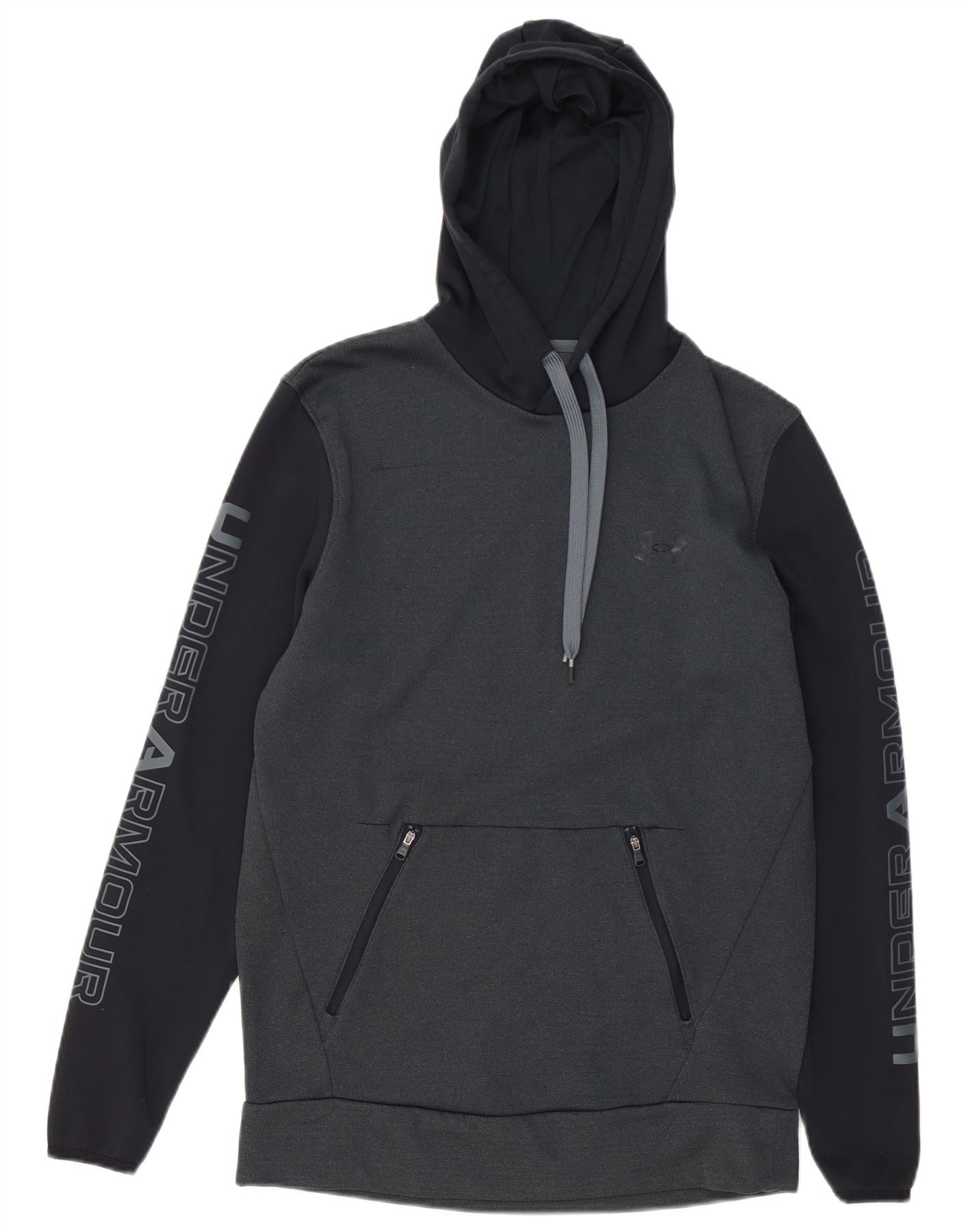 UNDER ARMOUR Mens Cold Gear Graphic Hoodie Jumper Small Grey Colourblock